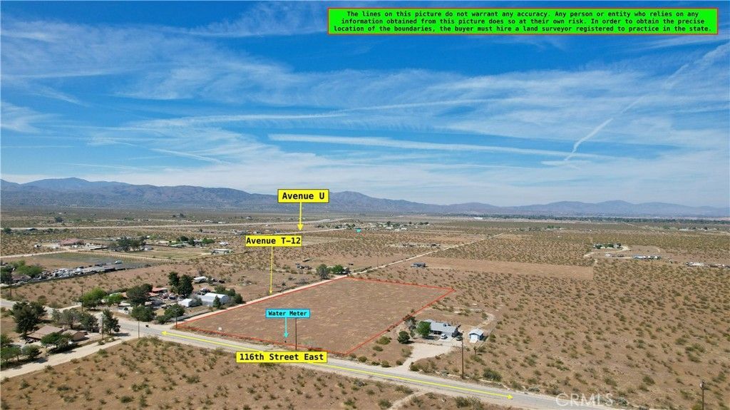 Corner lot located on 116th Street East (paved road) and Avenue T-12. Property features a **water meter already installed, saving thousands in cost and time. Fully usable land, ideal for building your dream home. Perfect for horses, animals, or agricultural use, with plenty of space for ADUs, a workshop, or investment opportunities. Conveniently located **just minutes from Hwy 138, near schools, parks, gas stations, and shopping centers. Financing available, including options for construction. Great opportunity.
