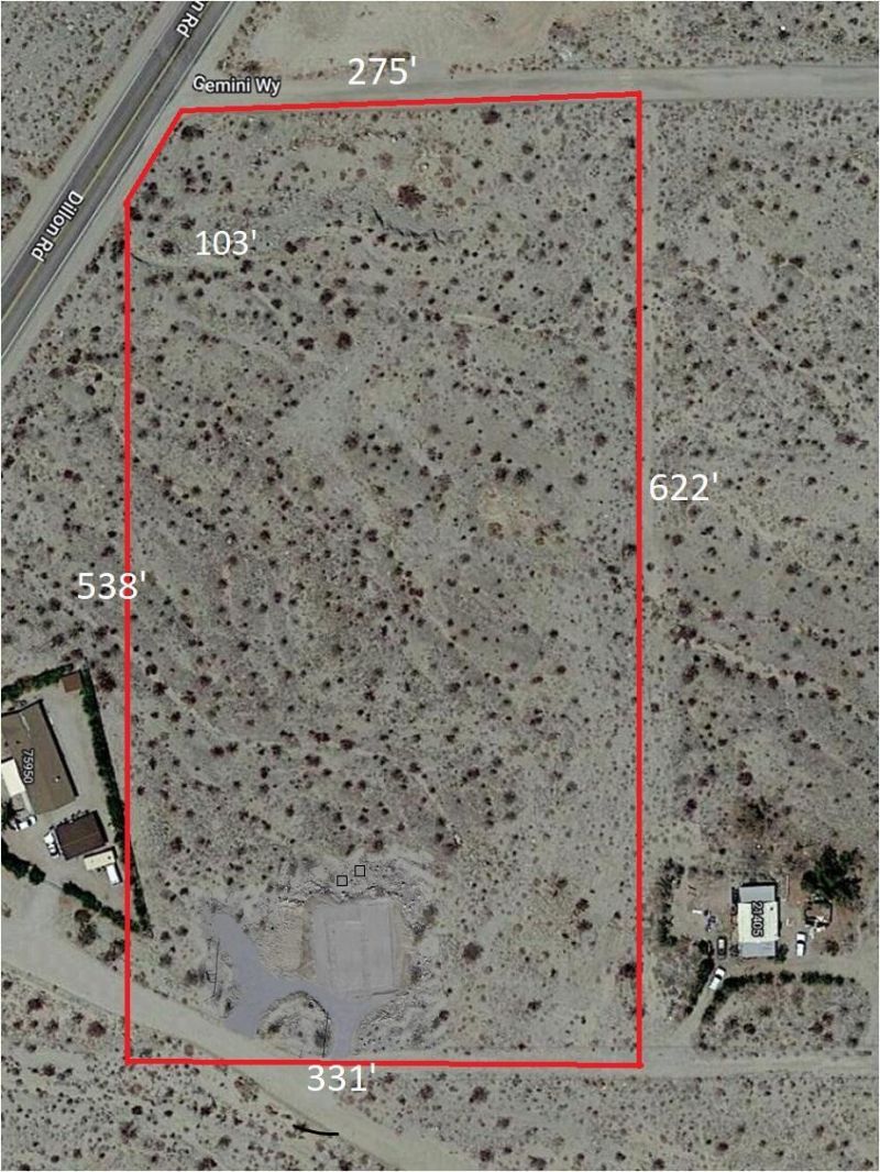 This expansive 4.78-acre parcel is situated on the northeast corner of Dillon and Gemini. The land is primarily flat and designated as R-1A agricultural zoned, making it ideal for a variety of uses. Its location provides convenient access to several key areas: just 30 minutes from downtown Palm Springs, 20 minutes from Desert Hot Springs, and only 10 minutes from the I-10 Freeway.Enjoy 360-degree panoramic mountain and vista views that highlight the natural landscape. The property offers fresh desert breezes and opportunities to observe local wildlife, creating a tranquil and inviting environment.For those seeking to develop their own private paradise, this property presents a unique opportunity. It is close enough to entertainment and modern conveniences yet offers a sense of seclusion and the possibility to live somewhat off the grid. The land includes a potential natural water reservoir and ample space for horses. Additionally, a designated building site has been added, ready for new ideas and development. H2O and electric laterals are located nearby, further enhancing the property's appeal.