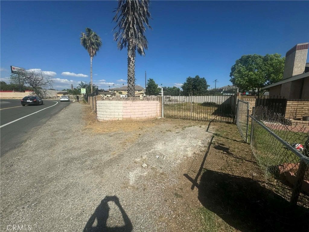 Land for sale. Located right off the 215 northbound exit for La Cadena. Commercial lot just under 10,000 sqft. Already fenced around with a separate entrance for the lot. Close to shopping, freeway exit, and schools. If you drive by the lot, there are two parcels within the gated area. The palm tree in the middle separates the two parcels.