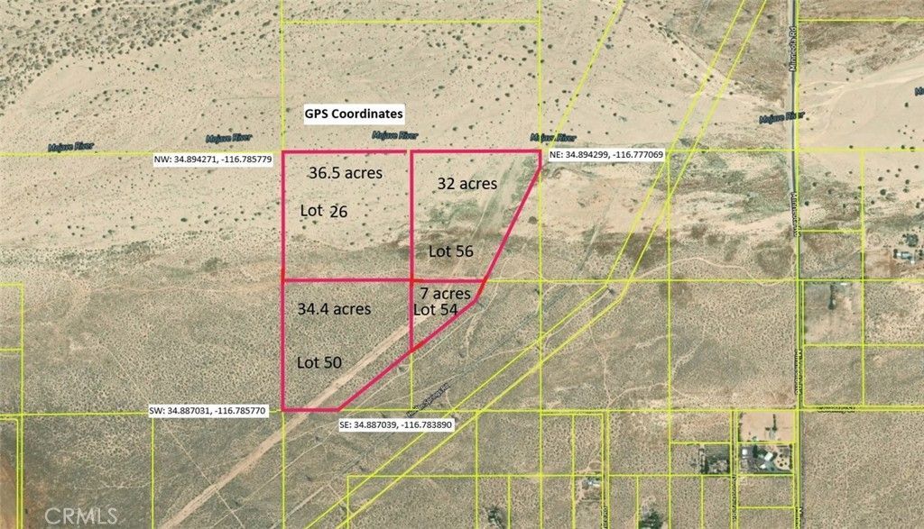 Investment Opportunity: 117-Acre Newberry Springs Land Portfolio Explore the potential of this expansive 117-acre vacant land portfolio located in the heart of Newberry Springs, CA. Positioned just off Hidden Springs Road, this offering consists of four distinct parcels (APNs: 0515-071-26, 0515-071-50, 0515-071-54, 0515-071-56) ranging from approximately 7 to 40 acres. With mixed zoning and a flat, desert topography, these lots are ideally suited for a variety of high-impact uses, most notably solar farm development or long-term land banking. Priced aggressively at just $2,100 per acre, this is a rare opportunity to acquire significant acreage in San Bernardino County at an accessible price point. Buy one or all. Property Highlights Total Acreage: ±117 Acres (Multiple contiguous and near-contiguous lots). Versatile Zoning: Supports renewable energy projects (solar) and other rural/agricultural uses. Strategic Pricing: Exceptional value & perfect for developers or private investors. Location: Secluded yet accessible via Hidden Springs Road, offering the privacy required for industrial or energy utility projects. Location & Directions The property is located near One Hidden Springs Rd, Newberry Springs, CA 92365. To visit the site: 1. Start at 35045 Minneola Rd, Newberry Springs, CA 92365. 2. Navigate to the NE corner coordinates: 34.894299, -116.777069. 3. Follow Hidden Springs Road (unpaved) directly to the northeast corner of the 113-acre segment. GPS Boundary Coordinates: NE: 34.894299, -116.777069 NW: 34.894271, -116.785779 SW: 34.887031, -116.785770 SE: 34.887039, -116.783890 Investment Highlights Significant Scale: A rare ±117-acre portfolio comprised of four parcels, offering expansive space for large-scale development. Renewable Energy Potential: Strategically located and zoned for solar farm development, taking advantage of the region's high solar exposure. Incredible Value: Priced to move at only $2,100+- per acre, representing a prime opportunity for land banking or immediate utility projects. Flexible Parcel Sizes: Includes a mix of lots ranging from 7 to 40 acres, allowing for versatile site planning and phased development. Accessible Desert Location: Positioned just off Hidden Springs Road with clear GPS coordinates for easy site identification and logistical planning.