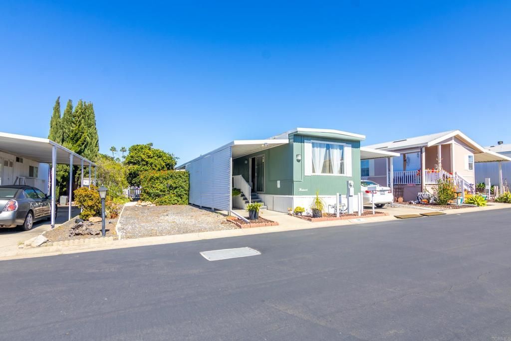 Cozy little home!! Perfect for those looking to down size or for an affordable home. Home recently painted inside and out. Great location. Well maintained park with many amenities. The exterior boasts a low maintenance yard with several fruit trees, private covered porch, and storage shed. Vista Royalodge is a 55+ park that allows second resident to be age 45+. 2 small pets okay with management approval. Monthly space rent is $1,021.25. Walking distance to Sprouts, Albertsons, Rite Aid, dining & shopping, near Downtown Vista; breweries, movie theater, transportation, Moonlight Amphitheater & a short drive to beaches! Call and schedule your private showing.