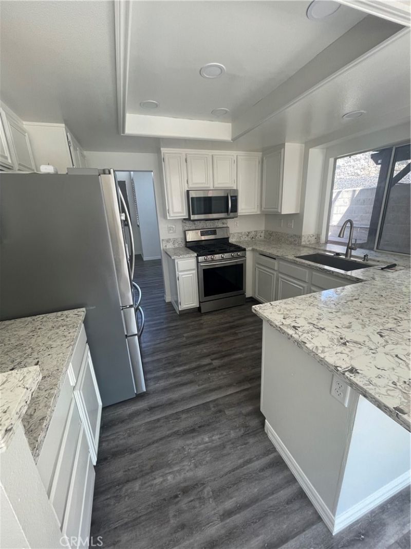 Updated two-story home lots of upgrades. 3 bedrooms, 2.5 bath, with upstairs loft that can be utilized for kids play area or home office. High vaulted ceilings in entry and living room with lots of natural light. Separate family room with fireplace open to the kitchen. Kitchen features upgraded appliances (refrigerator included) and quartz counter tops. Primary suite with walk-in closet and large deck to enjoy the surrounding views. New interior paint. Vinyl plank flooring throughout. Inside laundry room with washer/dryer hookups. Low maintenance landscaping. Private rear yard with storage shed, covered patio, block wall, deck with above ground spa. Shared association pool, park with walking paths, and playground just one block away.