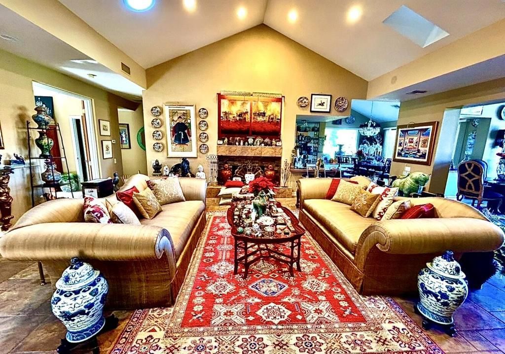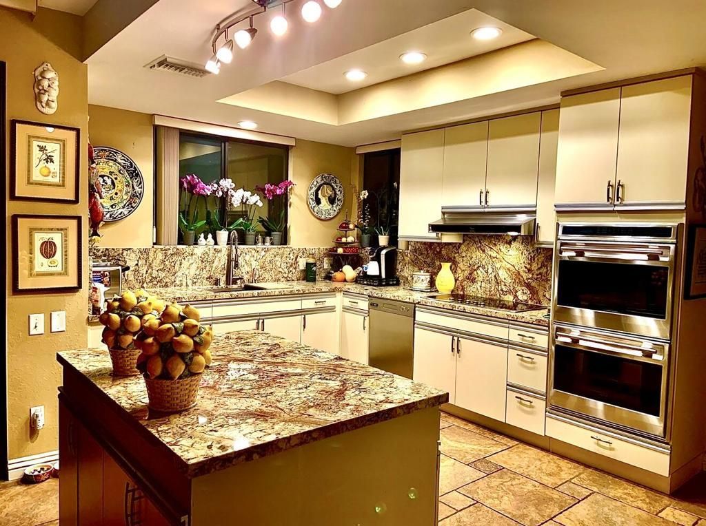 This exceptional, custom freestanding home truly stands out as one of a kind. Custom ordered design includes the addition of a large family media room with beamed ceiling, built-in cabinets and clerestory windows. Spacious inviting living room features, custom glass entry doors, Versailles pattern porcelain tile flooring, vaulted ceilings, stacked stone fireplace and wet bar with wine cooler and three functional skylights. The spacious 3,616 sq ft interior offers four generous bedrooms, three full ensuite bathrooms and one three-quarter bath with access to fourth bedroom/office. Walls of windows showcase expansive views of the golf course, lake and mountains. Eat-in Kitchen features granite counters, Island, Wolfe and Subzero appliances, generous pantry, stainless steel sink, wine cooler and direct access to relaxing terrace with BBQ, fruit trees. Formal dining room offers delightful double views and picture window with outdoor security screen. Huge main bedroom suite has vaulted ceilings, walls of windows, walk-in closet, ensuite bathroom with separate shower & large-jetted bathtub, double sink vanity and separate water closet. Largest home in Vista del Sol, located on a quiet cul-de-sac, offering expansive views of the golf course, lake, and mountains. Enter through a large private courtyard patio. Generous size two car garage with golf cart garage and storage closet. Other features include Security system, LED type recessed lighting, double paned windows with new screens throughout, dual HVAC systems, dual water heaters, Maytag Nautilus washer/dryer. Natural Gas fire pit, perfect year-round entertaining outdoor and indoor areas holiday celebrations, it works fantastically for large gatherings. Includes all high-end outdoor patio furniture and deluxe BBQ. Automatic watering systems. Beautiful easily accessible pool/spa areas nearby. Three guest parking areas conveniently located nearby