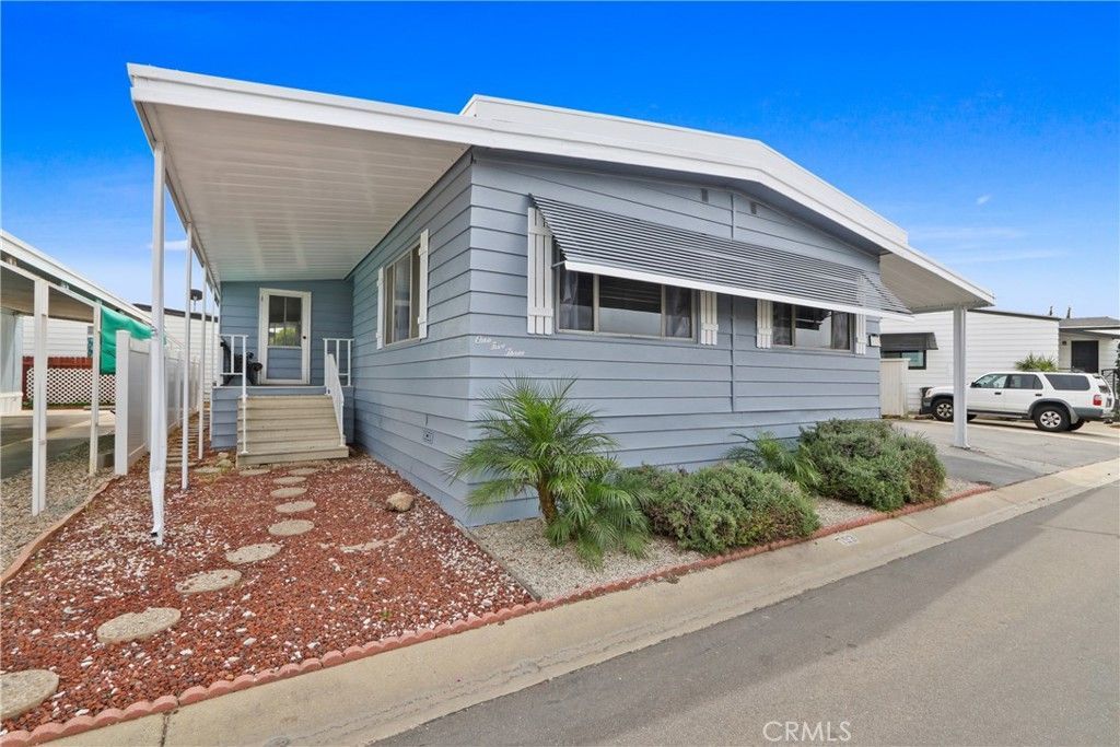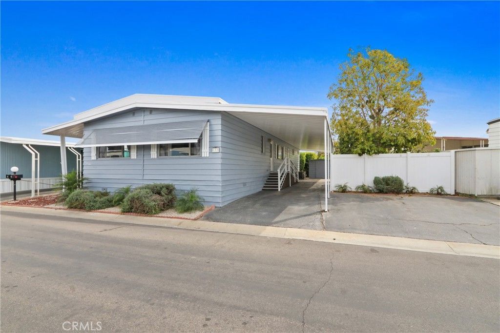 Affordable senior living at its very best! Welcome to San Rafael, one of the South Bays premier Manufactured Home communities. Located on a quiet street on an oversized lot, this remodeled 2 bedroom, 2 bath home is absolutely turnkey. Enter into a bright and open living room with sun streaming through its many windows, a fresh light paint palette, and newer laminate flooring. A cozy fireplace and built-in shelving anchor the space. The kitchen has been recently renovated with white shaker cabinets, quartz counters, a deep farmhouse apron sink, and features stainless appliances, including the side-by-side fridge! The adjacent dining space offers lots of extra storage with its built-in buffet. A 2nd living space is perfect for entertaining with its adjoining wet bar. The primary bedroom suite is quite spacious and is located at the back of the home for ultimate privacy and has storage and closet space galore! A built-in dresser is a real space-saver, and there is a wall closet in addition to a walk-in closet! Getting ready for the day is a breeze, with a separate dressing area, and the bathroom is completely redone! A large vanity with quartz counters and a custom walk-in shower with seating was designed with convenience and comfort in mind. The second bedroom perfect features an attached sunroom and even has a separate entrance off the front porch. A newly renovated bathroom is also accessible from the bedroom or the main hallway. A new vanity, new fixtures and flooring and a brand-new shower enclosure are all there for you to enjoy. This home also features stackable laundry with the washer/dryer included. As if this is not enough, this home also offers a BRAND NEW ROOF, covered front porch area, two storage sheds and a spacious yard featuring mature fruit-bearing apple and avocado trees. Low maintenance vinyl fencing surrounds the space. Guest parking is located just outside your driveway for added convenience and also offers distance between neighbors. You wont have to go far to socialize ? this park offers the key to an active lifestyle! With a large community center featuring a game room, swimming pool, 2 spas, and pickleball courts, youll have plenty to do! The location is also a winner ? close to medical facilities, stores, and freeway access, this is an opportunity you won't want to miss!