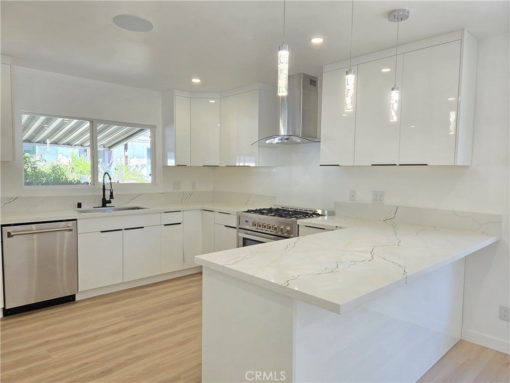 This is your chance to own a meticulously crafted, move-in-ready home where YOU OWN THE LAND. Nestled in the highly desirable Top of Topanga, this beautifully upgraded 3-bedroom, 3-bathroom home offers the perfect blend of modern comfort and smart living .The open-concept living area is perfect for both entertaining and relaxation, featuring built-in ceiling speakers that set the tone for any occasion. Natural light floods the dining area, seamlessly connecting to a stunning contemporary kitchen. Designed for both style and functionality, the kitchen boasts a sleek quartz island peninsula, glossy white cabinetry with Cosmo stainless steel appliances, making it a chefs dream. The primary suite is a serene retreat, filled with natural light and complemented by a spacious walk-in closet. The spa-inspired primary bath is a true sanctuary, featuring a dual floating vanity with anti-fog LED mirrors, black fixtures, a freestanding soaking tub, and a walk-in shower with a rain shower head, handheld spray pressure and a built-in bench, all finished in sophisticated large-format tile for a clean, modern aesthetic. The second bedroom has a generous closet space with it's own private bathroom with a walk-in shower, floating vanity and anti-fog LED mirror. while the third bedroom is bright and inviting with it's nice closet and easy access to the third bathroom, that features a floating vanity, LED mirror and a tile shower. The laundry area has its own free standing sink complemented with quartz countertops and glossy white cabinetry. This manufactured home has a newer roof, a dedicated security system, and individual split air systems in every room for personalized comfort. You own your land fee simple! Residents of Top O Topanga community enjoy exceptional amenities, including a pool, jacuzzi, clubhouse, Kids park, picnic area, car wash bay and breathtaking views of the city! Don't miss out on this rare opportunity!