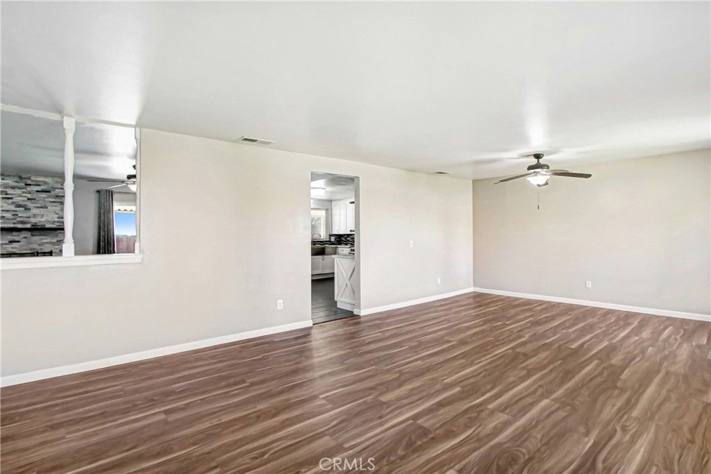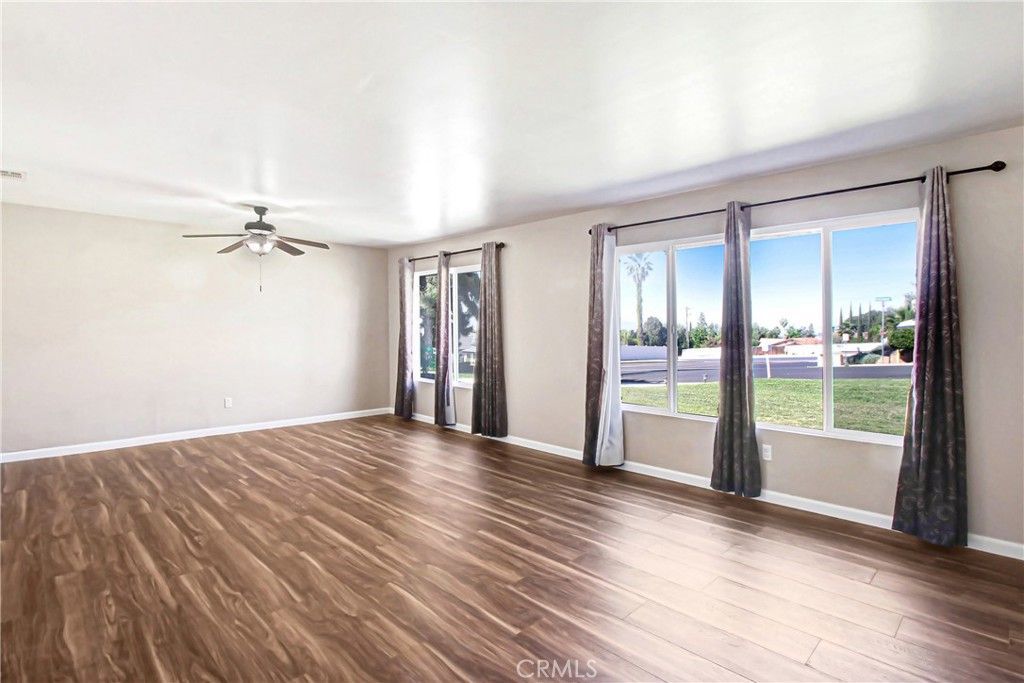 Welcome to this beautifully upgraded single-story home with an IN GROUND POOL AND SPA located in North Moreno Valley! Situated on an EXPANSIVE 13,939 SQFT LOT, this 5-bedroom, 2-bathroom residence offers 2,008 sqft of well-designed living space, perfect for both everyday living and entertaining. Step inside to find a thoughtfully updated interior featuring brand new luxury vinyl plank flooring in the dining area and durable wood-like tile flooring throughout the family room and kitchen. The remodeled kitchen is a true centerpiece, showcasing sleek quartz countertops, a custom tile backsplash, and ample space for cooking and gathering. The inviting family room is highlighted by a stunning fireplace with ledger stone accents, creating a warm and stylish atmosphere. All secondary bedrooms are generously sized and feature laminate flooring, providing comfort and functionality for family or guests. The remodeled hall bathroom includes an updated vanity with a large sink and modern finishes. The spacious primary suite offers two closets, a newer dual-sink vanity, and a beautifully walk-in shower. Step outside to your private backyard oasis?perfect for entertaining! Enjoy the in-ground pool and spa, securely fenced for added safety, along with a large manicured grass area ideal for gatherings, play, or relaxation. The covered patio provides a shaded retreat for year-round enjoyment. Additional highlights include paid-off solar panels for energy efficiency, newer dual-pane windows, and plenty of space on this oversized lot to truly make it your own. This is a rare opportunity to own a turnkey single-story pool home with space, upgrades, and functionality?dont miss out!