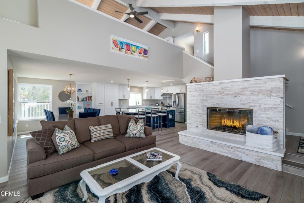 Welcome to 117 Santa Cruz Avenue, a fully furnished tri-level beach home perfectly situated in the coveted 'Golden Triangle' of Hollywood Beach where the Channel Islands Harbor meets the Pacific Ocean. Available for short- or long-term rental, this recently remodeled residence blends coastal elegance, thoughtful design, and an unbeatable location just steps from sand and sea.The main living area on the 2nd floor features an inviting open layout with beach and harbor views, beamed ceilings, and a striking fireplace. The Living and Dining Rooms flow into a stunning Kitchen with quartzite countertops, premium stainless-steel appliances, generous cabinetry, and an oversized island ideal for entertaining or casual dining. Also on this level, the spacious Primary Suite offers a huge walk-in shower, dual vanities, and a cedar-lined walk-in closet, with a stylish Guest Bath nearby.The third floor showcases a sunlit loft lounge with a wet bar and opens to a private balcony boasting stunning views overlooking the harbor, beach and ocean. It's the perfect spot to unwind and watch the boats sail by or enjoy a breathtaking sunset. This level also includes a spacious bedroom with ocean views, built-in shelving and dresser drawers, and a full bathroom. Completing this level is a tranquil deck, ideal for savoring morning coffee or unwinding with sunset cocktails while the flames in the firepit dance.The 1st floor offers two additional Bedrooms, a large Bath with dual vanities, and an attached garage with laundry and parking for 1 car. From morning beach walks to evenings at the harbor, this home captures the essence of California's relaxed beach lifestyle. Stroll to local restaurants, shops, and the Sunday Farmers Market. Whether you're relocating, working remotely, or simply seeking a long-term coastal sanctuary, this home invites you to live where every day feels like a vacation.750 Credit Score Required. No Pets.30+ day rentals: Phone booking required $50/person application Cleaning & utility fees apply Security deposit = one month's rent Renters insurance required. *DISCLOSURE!! This home is a FULLY FURNISHED Rental. *MONTHLY* Rental prices are SUBJECT TO CHANGE for SUMMER months (JUNE, JULY, & AUGUST).
