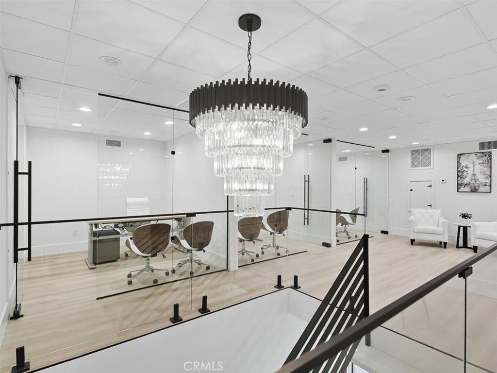 Step into a refined workspace that blends form, function, and aesthetic appeal. From the moment visitors arrive, the reception areas upscale ambiance conveys professionalism. Glass-walled conference rooms allow for privacy without sacrificing transparency, while private offices offer quiet focus. Practical amenities?including two kitchenettes and ample parking?are matched by design-forward finishes, such as statement lighting and bespoke cabinetry. This space reflects a commitment to quality and is ideal for businesses looking to brand themselves through their office environment.