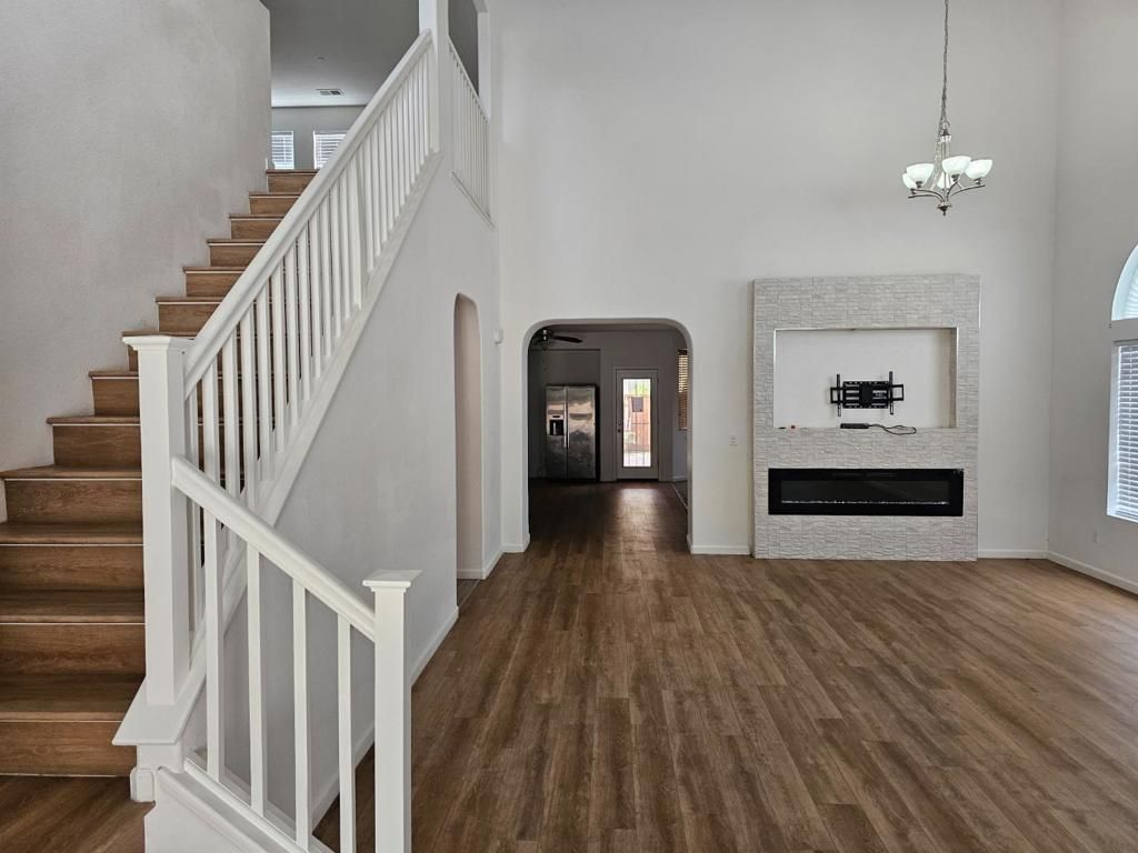 Homes of this size are rarely available in this area. Located in Santa Nella, this spacious 5-bedroom residence features a 3-car garage, formal living and dining rooms, and a primary suite on each floor. The large upstairs loft offers versatile space for a home office, playroom, or lounge. Recent upgrades include brand-new flooring, beautiful hardwood laminate throughout, and stunning white quartz countertops with full-length backsplashes. The kitchen is complemented by custom dark-tone cabinets and elegant, updated lighting fixtures. Upon entry, youre welcomed by a gorgeous fireplace with a custom stacked-stone mantel and convenient TV hookups, creating a warm and inviting focal point. The primary bathroom is designed for comfort, featuring dual sinks, a standalone shower, and an oversized soaking tub. Storage is abundant, with ample cabinetry and a massive three-car garage to accommodate hobbies, tools, and seasonal items. Situated on a corner lot, the backyard is an entertainers dream with custom pavers, a large covered patio with power and lighting, and low-maintenance synthetic turf that stays green year-round. Conveniently located near I-5 and Highway 152, this home is ideal for commuters looking to stay close to Los Banos while enjoying easier access to the Bay Area.