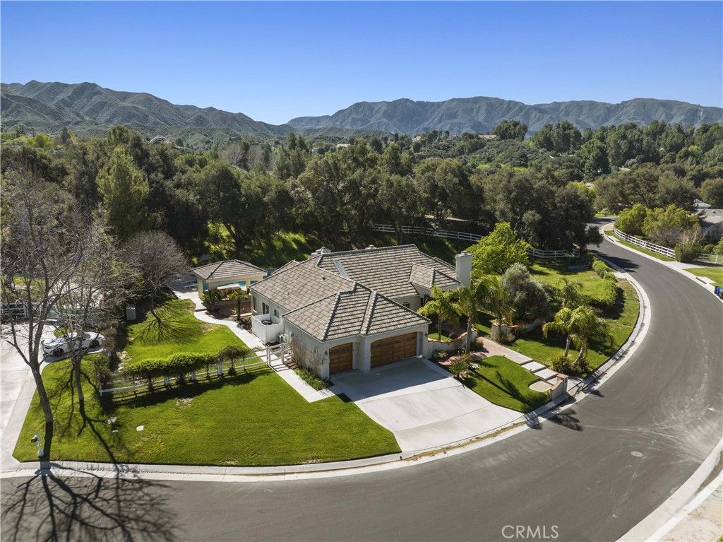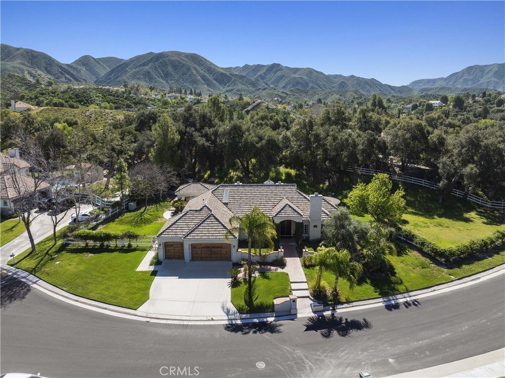 Welcome to one of the most desirable streets in all of Sand Canyon, located on a flat cul de sac within the sought after Crystal Springs Ranch community. Set on nearly one acre, this single story estate offers approximately 2,900 square feet with four bedrooms including a den that can easily function as a fourth bedroom, three full bathrooms, and a layout designed for both everyday living and entertaining. The home is filled with natural light and features high ceilings, wood floors, French doors, and three fireplaces that create a warm and inviting atmosphere. The refreshed kitchen serves as the heart of the home and has been thoughtfully arranged to create a spacious eat in gathering area, featuring stainless steel appliances, double ovens, granite countertops, a large center island with bar seating, a hammered copper farmhouse sink, bronze fixtures, and a charming breakfast nook with custom built in seating. The built in banquet seating includes hidden storage beneath the seats, adding both character and functionality. At the front of the home, the main living room offers an inviting space for relaxing or entertaining. Between two secondary bedrooms is a versatile flex space ideal for a study, work area, or lounge, with those bedrooms sharing a Jack and Jill bathroom, while the current den can easily function as a fourth bedroom and connects to a full bathroom, providing flexibility for guests, a home office, or multi generational living. The primary suite offers a retreat like setting with a door to the backyard and a spa inspired bathroom featuring custom cabinetry, elegant vanities, glass block details, a handcrafted hammered copper soaking tub, and a hidden walk in closet. The backyard creates a private entertainers setting with a sparkling pool and spa, full outdoor kitchen with built in barbecue and sink, permanent gazebo, and a large wraparound covered patio with ceiling fans that stretches nearly the length of the home, surrounded by mature oak trees and natural surroundings. Additional features include a three car garage, indoor laundry room, and space for potential RV parking. Crystal Springs Ranch offers a peaceful setting with a low HOA of approximately $150 per year and no Mello Roos while still being just minutes from shopping, dining, and freeway access in Santa Clarita.