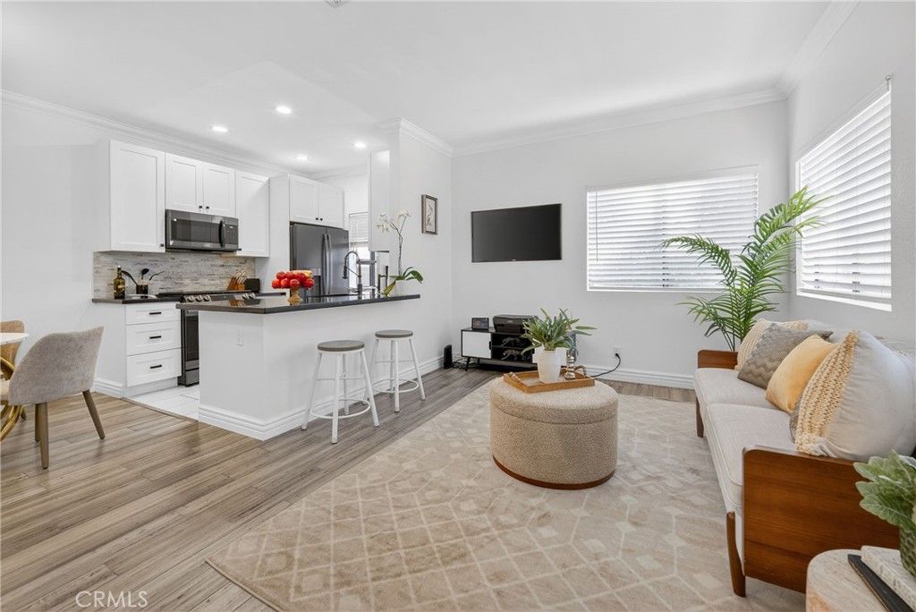 Welcome to Casa De Oaks, a beautifully maintained home in a prime location in the heart of Thousand Oaks. This inviting residence offers the perfect blend of comfort, style, and convenience, ideal for enjoying the best of Southern California living. Step inside to a light filled interior with an open and functional floor plan designed for both everyday living and entertaining. The completely reimagined kitchen features a new layout with an island, quartz countertops, soft closing drawers, and sleek black stainless steel Samsung appliances, creating a modern and highly functional centerpiece of the home. Throughout the condo, you will find 3/8 engineered bamboo flooring paired with a half inch cork underlayment for enhanced sound insulation, offering a quieter and more peaceful living experience. Additional upgrades include new six panel doors, elegant baseboards, crown molding downstairs, and all new stainless steel light fixtures, adding a cohesive and refined finish. The spacious primary bedroom offers a private balcony with serene mountain views, while both the living room and bedroom enjoy a unique, unobstructed view overlooking the Civic Arts Plaza, creating a rare and tranquil setting. One of the standout features is the expansive outdoor patio, perfect for relaxing, dining al fresco, or hosting guests. Additional highlights include well sized bedrooms, comfortable living spaces, and two side by side parking spaces under the carport, a rare feature as the only unit in the building with this setup. Located in a highly desirable community, Casa De Oaks is just moments from the Civic Arts Plaza and Gardens of the World, offering easy access to events, performances, and beautiful outdoor spaces. The home is also close to shopping, dining, parks, and everyday essentials, with convenient access to the 101 and 23 freeways. Whether you are a first time buyer or looking to simplify your lifestyle, this home offers exceptional value in one of Thousand Oaks most sought after neighborhoods.