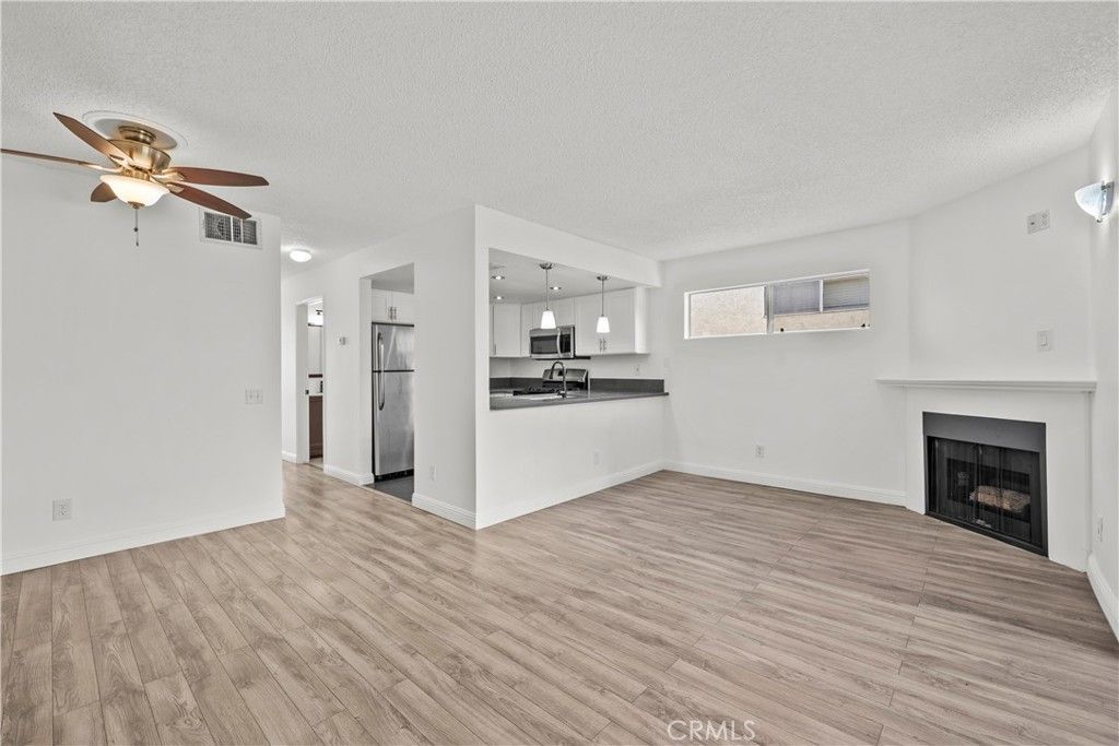 Welcome to this move in ready 2 bedroom, 2 bathroom condo with a spacious and comfortable layout. The home has been refreshed with new paint and new flooring throughout, which gives the interior a clean and bright feel. Large windows bring in plenty of natural light and create a warm and inviting space. The updated kitchen features white shaker cabinets and quartz countertops along with clean modern finishes. The layout works well for everyday living and connects nicely with the living and dining areas, which creates an open and functional space. The floor plan includes two bedrooms and two bathrooms, which offers flexibility for guests, family, or a home office. The unit also includes an in unit washer and dryer and a newer HVAC system for year round comfort. Located in a gated community with amenities including a pool, clubhouse, and basketball court. The complex is well lit at night and offers plenty of parking for residents and guests. The location provides quick freeway access and is close to shopping, dining, and everyday stores. Great location with convenient access to daily needs. Come take a look and make this your home.