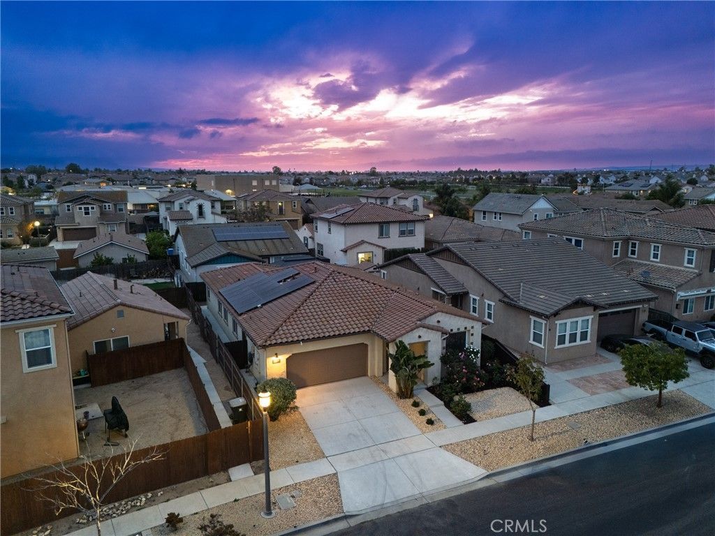 Experience refined living in this beautifully appointed 4-bedroom, 3-bath home where modern comfort meets effortless sophistication. The open-concept layout is filled with natural light, creating an inviting and airy ambiance from entry to living spaces. At the heart of the home, the chef-inspired kitchen features granite slab countertops, rich dark wood cabinetry, and quality appliances--perfect for everyday living and entertaining. Porcelain tile flooring flows throughout for a sleek, cohesive look. The private primary suite is thoughtfully located at the rear, offering a peaceful retreat with a walk-in closet and en-suite bath featuring a vanity with dual copper sinks, a soaking tub, and separate shower. Additional highlights include owned solar, EV charging, tankless water heater, reverse osmosis system, smart thermostat, and dual-pane windows. Fresh interior paint and updated exterior fencing enhance its turnkey appeal. Enjoy low-maintenance landscaping with rose gardens and clean hardscape. Located in a quiet neighborhood with no HOA, this home offers privacy, comfort, and modern upgrades.