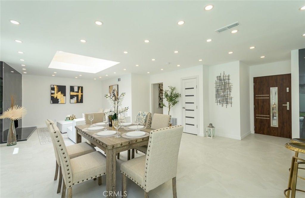 Beautifully reimagined modern home in the heart of Chatsworth, featuring clean lines, high-end finishes, and an exceptional open-concept layout. Step into a bright and expansive living space with soaring ceilings, elegant tray detail, and recessed lighting throughout. The seamless flow between the living, dining, and designer kitchen creates the perfect setting for both everyday living and entertaining. Spacious, light-filled bedrooms and thoughtfully updated bathrooms showcase contemporary style and comfort. A striking fireplace wall serves as a sophisticated focal point, while large windows and sliding doors invite natural light and connect to the private backyard. Located in a quiet neighborhood near parks, shopping, and dining, this turnkey home is move-in ready and designed for modern California living.