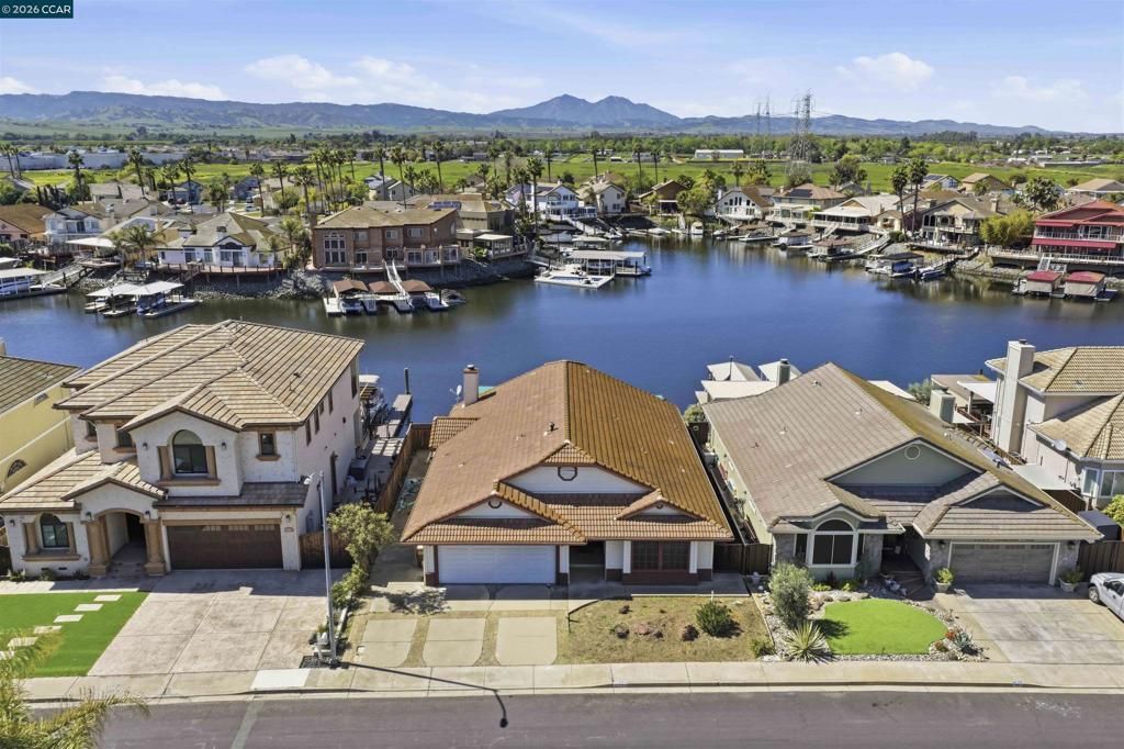 Enjoy stunning water views from this spacious single story waterfront home with private boat dock. Popular floor plan features massive great room and soaring ceilings. 3 bedrooms, 2.5 baths, large kitchen with breakfast nook, dining area, wet bar, and laundry room. Large primary suite features sliding glass door to deck and a huge walk-in closet. Enjoy spectacular sunsets and breathtaking water views from your deck! Perfect for entertaining! Includes a U-shaped boat dock with room for all of your water toys! Access to over a thousand miles of delta waterways from your backyard! NO HOA!