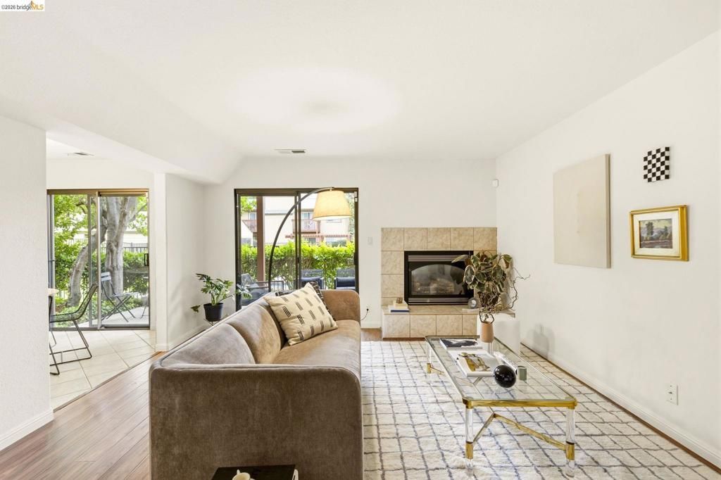 Tucked within a well-situated Castro Valley community, this thoughtfully updated townhouse offers a seamless blend of comfort, style, and everyday ease. Updated flooring runs through the main living spaces, creating a warm and refined feel throughout. The living room, anchored by a fireplace, flows effortlessly into the formal dining area and out to a private patio overlooking the pool, offering a natural extension of the living space. The dining area also opens to the kitchen, enhancing the homes functional layout. The kitchen and bathrooms have been refreshed with new countertops and designer lighting, bringing a clean, modern aesthetic throughout. A well-placed half bathroom on the main level adds everyday convenience. Upstairs, the spacious primary bedroom features its own private deck, creating a quiet retreat. A generously sized secondary bedroom, two full bathrooms, and new carpet add comfort to the upper level. Ample storage includes large closets and two sizable balcony storage areas. Complete with a two-car garage and close proximity to shops, restaurants, and high way access, this home offers both comfort and convenience.