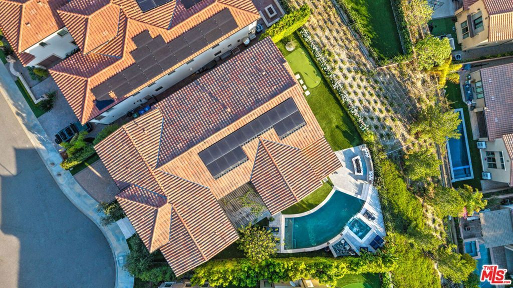 Experience the pinnacle of luxury living in this highly sought after guard-gated Westcliffe estate, located within the prestigious Palisades Collection. Positioned on a flat street within a private cul-de-sac and flanked by mature olive trees upon entry, this model-like home showcases timeless English-inspired architecture with an elegant exposed brick exterior, custom paver driveway, and grand travertine tile entry steps that create a striking first impression. Inside, a breathtaking grand foyer welcomes you with a dramatic spiral staircase, soaring ceilings, and a stunning modern chandelier, all enhanced by sun-filled panoramic valley views. Designed for seamless indoor-outdoor living, expansive 12-foot wall-to-wall pocket doors open to a truly exceptional backyard retreat featuring 180-degree jetliner views from sunrise to sunset. The resort-style grounds are an entertainer's dream, complete with a Pebble Tec saltwater pool, elevated spa with upgraded acrylic glass, outdoor fireplace, custom fire pit with king bench seating, and a fully equipped outdoor kitchen/BBQ station with bar counter. The L-shaped yard design features $130K in mature landscaping for ultimate privacy, while a luxury artificial putting green elevates the outdoor experience. Spanish tile finishes and thoughtfully designed patio spaces create the perfect setting for dining and gatherings. At the center of the home, the designer chef's kitchen impresses with an expansive quartz island, Kitchenaid built-in refrigerator, dual ovens, 6-burner gas range, upgraded hood, and extended cabinetry with 3-inch thick countertops. It flows seamlessly into the formal dining area with additional custom cabinets and is complemented by a walk-in pantry and a bonus office featuring additional built-in storage space. Throughout the home, extensive upgrades and custom finishes enhance both style and function, including two added modern fireplaces, a fully enclosed movie theater room with built-ins, designer chandeliers and lighting, custom wall treatments such as a tiled staircase and feature walls, and durable luxury vinyl flooring upstairs. The upgraded garage offers built-in cabinets and storage, racks, and an enhanced door system.The primary suite serves as a private retreat, highlighted by a stunning balcony with sweeping views, a custom-designed walk-in closet, and a separate lounge area with additional cabinetry. Completing the home are thoughtful lifestyle enhancements such as a medical-grade whole-house filtration system, remote-controlled outdoor ceiling fans, upgraded front door and lighting, and carefully curated modern finishes throughout. This exceptional residence offers a rare blend of luxury, privacy, and refined design, perfectly suited for both elevated entertaining and everyday living. Ideally located just a short distance from premier amenities including Whole Foods, AMC Theatres, high-end dining, highly rated schools, convenient freeway access, parks, hiking trails, and mor
