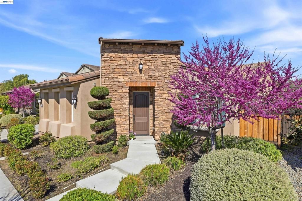 Beautiful turn-key 2018 Shea Umbria single story home on a premium cul-de-sac lot with a rare private street-entry courtyard. Inside, enjoy hardwood floors, plantation shutters, and a bright open floor plan with a formal living room, dining room and a great room with a fireplace and surround speakers. The gourmet kitchen features upgraded ceiling height cabinetry, upgraded countertops, a 2-tier island, and upgraded appliances. The thoughtful layout includes a Jack-and-Jill bathroom for bedrooms 2 and 3. The primary suite offers two walk-in closets and a spa-like bath with an oversized shower with designer tile, a soaking tub, and dual vanities. Large sliding doors lead to the California Room, perfect for year-round indoor-outdoor living. All of this is within walking distance to Cordes Elementary (rated 10/10) and Mountain House High School (rated 10/10). Easy access to the highway and newly developed shopping centers. This home is a must see to truly appreciate its beauty, upgrades, and exceptional layout.