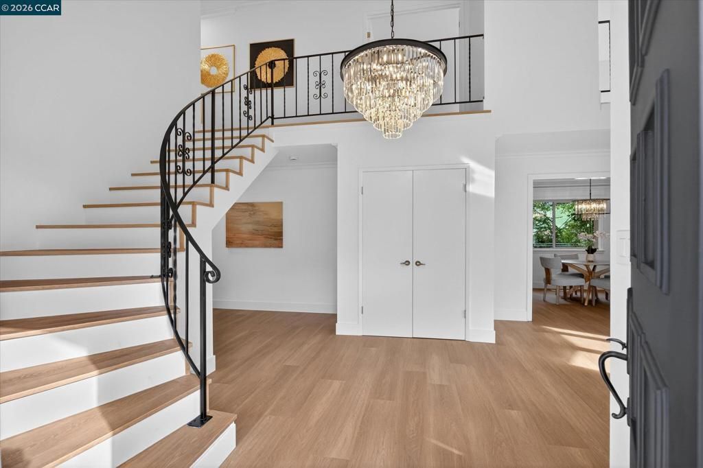 Tucked into the scenic Dana Hills neighborhood of Clayton, this beautifully refreshed 4 bedroom, 2.5 bath home with a versatile bonus room offers apprx. 2,619 sq ft of comfortable living space on a generous .26 acre lot. Fresh interior paint & updated flooring through out create a bright, welcoming feel, while soaring ceilings & a gorgeous curved staircase add architectural character to the main living areas. Spacious living & dining areas that flow easily into the updated kitchen featuring stone counters & modern finishes. Upstairs, a large bonus room provides endless possibilities as a 5th bedroom, media room, playroom, or additional family space & opens to an oversized balcony, perfect for enjoying the peaceful Mt Diablo setting. The loft-style primary suite adds a unique element & features French doors leading to a private balcony overlooking the beautifully landscaped backyard & surrounding vista hills. The backyard is a true retreat with expansive patios, decks, mature trees, & thoughtfully designed garden areas ideal for entertaining or simply relaxing outdoors. Residents enjoy HOA amenities including a clubhouse, greenbelt, & community pool. Just minutes from downtown Claytons shops, restaurants, parks, trails & top rated schools. Come see the beautiful updates & views!