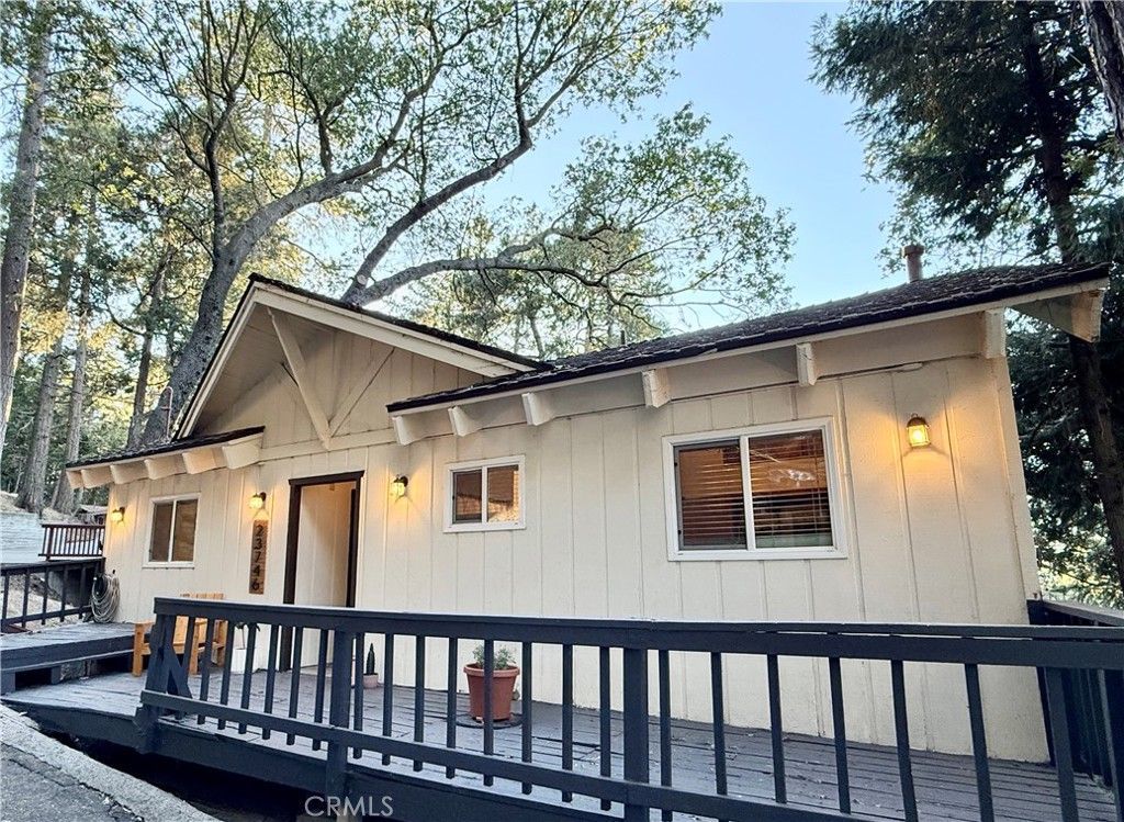 Welcome home! This 3 bedroom 2½ bath home boasts beautiful views of the forest. Upon entering the home, you are greeted with a large open floor plan perfect for entertaining and enjoying the vast views from the comfort of the updated fireplace or outside on the deck. On the main level you have two bedrooms and a full bathroom. The main living room has large vaulted ceilings that flows into the kitchen area, giving you endless possibilities for entertaining or simply enjoying the serenity of the forest views. The home has updated double paned windows/sliding doors and a newer 40 year roof installed in 2016. Continue down the stairs to the primary bedroom and another living area complete with a second fireplace and deck. There is a bonus room which could be used as a 4th bedroom as well. The property line goes up to the road on Crest Forest Drive and has the space for a future parking deck. Very close to Lake Gregory and shopping in downtown Crestline.