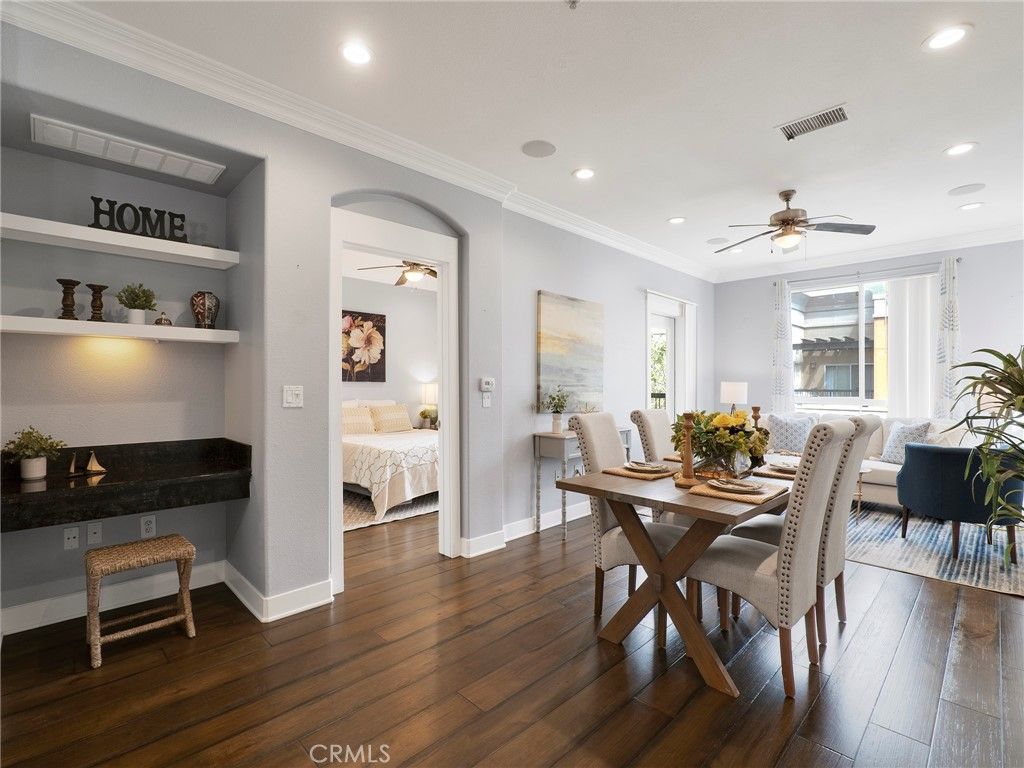 Welcome to this beautifully maintained 2-bedroom, 2-bathroom condo located in the heart of Valencias highly desirable Town Center community. This thoughtfully designed home offers an ideal layout with bedrooms on opposite wings, providing excellent privacy for residents or guests. Step inside to a warm and inviting living space where a well-appointed kitchen seamlessly flows into the living room?perfect for both everyday living and entertaining. The kitchen is designed for functionality and comfort, creating a welcoming hub of the home. Recessed lighting throughout enhances the bright, modern feel. Enjoy your own private outdoor patio?an ideal spot for morning coffee or evening relaxation. Additional highlights include two designated covered parking spaces conveniently located side-by-side. Situated just moments from premier shopping, dining, and entertainment, this location offers unbeatable convenience with easy access to both the 5 and 14 freeways. A fantastic opportunity to own in one of Santa Claritas most walkable and vibrant areas.
