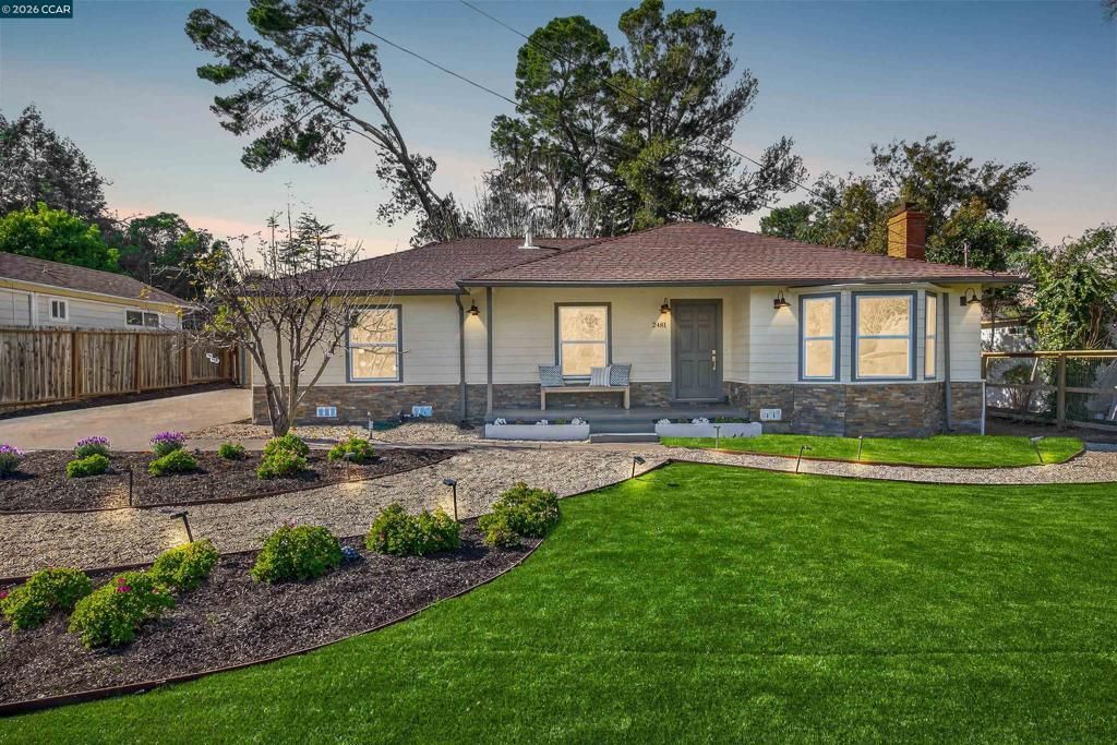 Open the door to an all-new, completely renovated single-level home on .27 acres in Walnut Creeks desirable Buena Vista neighborhood. Centrally located near the vibrant downtown, Broadway Plaza, BART, top WC & Acalanes District schools, 13-acre Larkey Park. 1322+/- light-filled SF. Loads of potential to customize level yard w/Income-producing ADU, guest house, resort-style bkyd, pool & more. The beauty lies in the details of this dynamic, contemporary, open-concept design, set behind an inviting front porch. 3 bds. 2 bths. Wood grain luxury vinyl floors. Dual pane windows & doors. Recessed lighting. Great rm anchored by front-facing bay window, wood-burning frpl. Chefs kitchen. Quartz counters, tile backsplash, porcelain apron sink, dual-toned cabinetry, island/breakfast bar, pendant lighting, brushed-gold fixtures. LG range. GE dishwasher. 4-dr refrigerator. Dining area w/slider to bkyd. Primary suite w/slider to bkyd. En suite w/single sink vanity, shwr w/rain & hand-held shwrhds. 2 frt-facing bdrms share bth w/single-sink vanity & shwr. 2-car detached garage, new door, gate, LG stacked washer/dryer, water heater, Lennox HVAC, gutters, downspouts, exterior lighting, interior/exterior paint, siding. Frnt synthetic turf. Mature foliage. Deep setback. Long driveway can be gated.