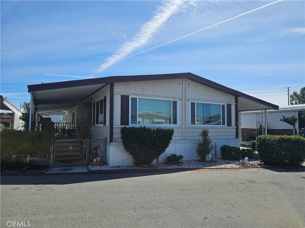 This is a lovely home that has many upgrades throughout in a family park for all ages. There is 2 bedrooms and 2 bathrooms and an open floor plan for your living room, dining room and kitchen with over 1100 square feet. The kitchen has upgraded cabinets and counters and the bathroom vanities are updated. There has been earthquake bracing upgrades as well. There is a good sized carport, a patio area, a shed and cute landscaped back yard and fenced area.