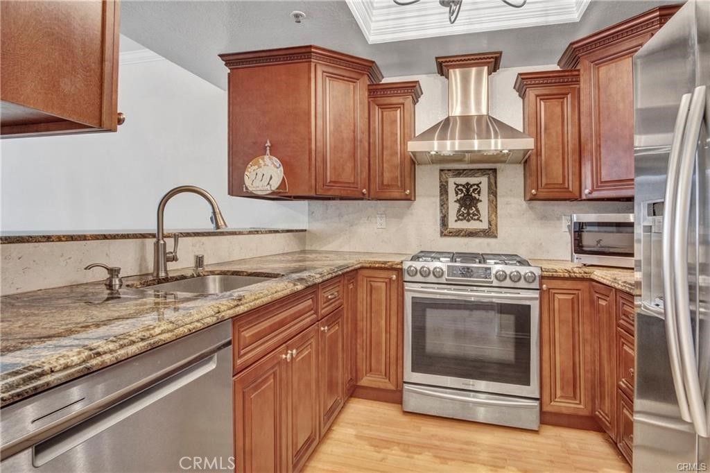Enjoy resort-style living in this beautifully upgraded, single-level end-unit condo featuring a full-width balcony with serene greenbelt views. The chefs kitchen is appointed with high-end stainless steel appliances, single-slab granite countertops, a limestone backsplash, custom soft-close cabinetry, and a coffered ceiling, while the living room offers built-in storage and a custom mahogany and granite fireplace. Both bathrooms are tastefully updated with custom cabinetry and granite finishes, and the spacious walk-in primary shower showcases premium stone and tile details with a Vigo shower panel. Additional enhancements include six-panel pine interior doors, mirrored closet doors with added shelving, custom laundry cabinetry, central air conditioning, and new carpeting in the bedrooms. Residents of Windemere enjoy extensive amenities, including 24-hour security, pools and spas, indoor sports courts, saunas, a fitness center, and a clubhouse with entertainment spaces. Ideally located near Wilson Park and its popular farmers market, this immaculate, move-in-ready home includes a full suite of appliances.