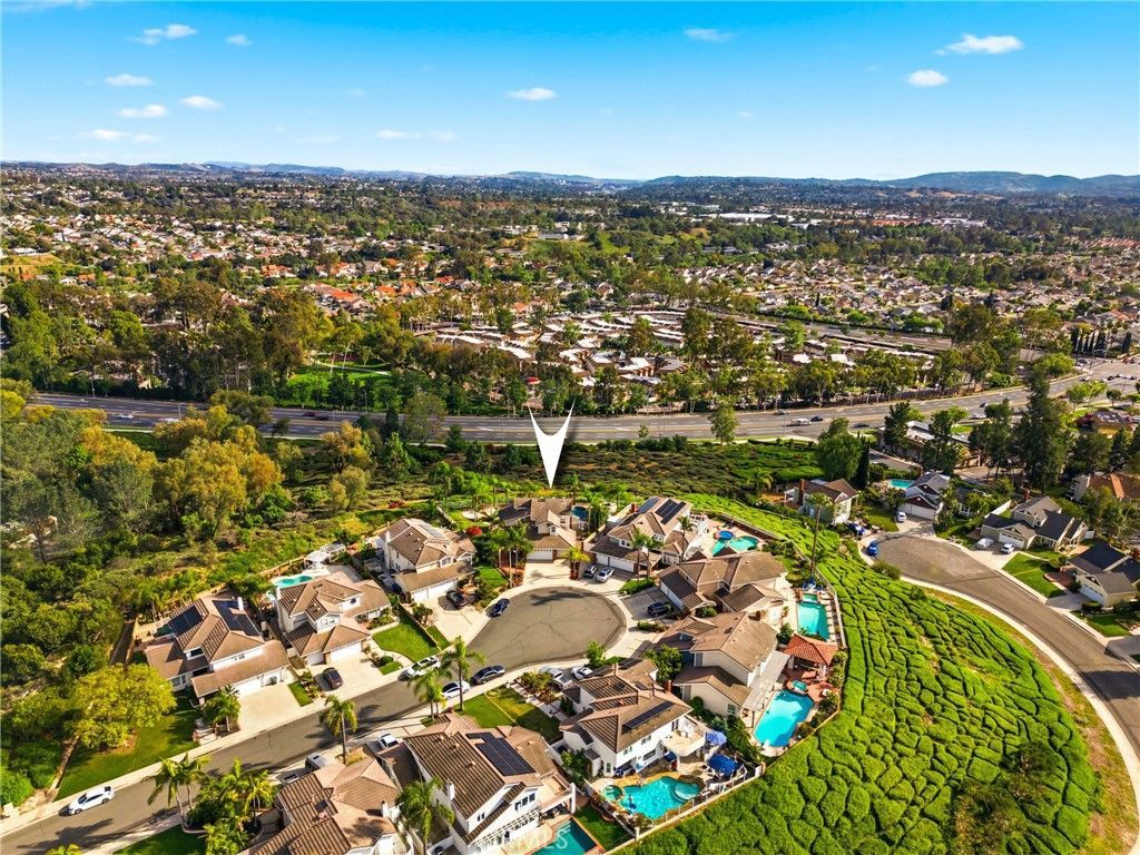 Welcome to your dream home at 25856 Windsong in Lake Forest, a truly one-of-a-kind two-story residence tucked away on a quiet cul-de-sac with breathtaking valley views, exceptional privacy, and abundant natural light throughout. This beautifully maintained home offers 4 bedrooms and 3 fully remodeled bathrooms across 2,746 square feet, situated on an expansive 8,800 square-foot pie-shaped lot. The bright and airy interior features vaulted ceilings, dual-pane windows and sliders, a formal living and dining area with bay windows, and a remodeled kitchen with a breakfast nook and outstanding views, seamlessly connecting to a separate family room with direct access to the backyard. The main level includes a downstairs bedroom, a three-quarter bathroom with walk-in shower, a dedicated laundry room with side-by-side washer and dryer, and generous garage storage. Upstairs, the primary suite impresses with vaulted ceilings, incredible light, a spacious bathroom with dual sinks, walk-in shower, separate soaking tub, and a large walk-in closet, along with two additional bedrooms and a remodeled hallway bathroom. The backyard is a private oasis featuring a large pool, spa/Jacuzzi, built-in barbecue area, and expansive grass space?perfect for entertaining or relaxing?while additional highlights include a whole house fan, solar panels to help keep energy costs down, a quiet setting away from the freeway, and a move-in-ready condition that is rarely found in a home offering this combination of views, lot size, and floor plan.