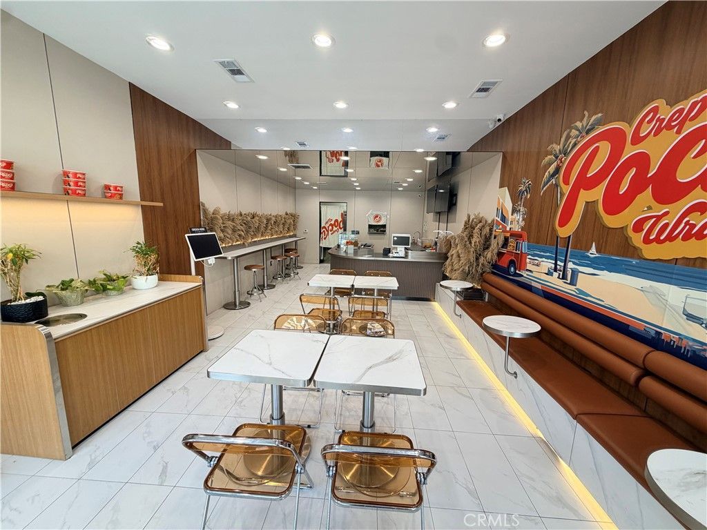 Rare turnkey opportunity to own a sleek, modern restaurant in Diamond Bars premier, H-Mart-anchored shopping destination, newly renovated in 2025. This highly efficient 903 SF space is perfectly positioned for maximum foot traffic, situated directly next door to Kumon and steps from Planet Fitness, capturing a consistent stream of gym-goers and parents who shop and snack while their children are in class. The interior features a sophisticated open bar counter complemented by a fully functional back kitchen equipped with a commercial hood, stovetops, and extensive refrigeration. With a remarkably reasonable all-inclusive monthly rent of $4,875 (covering CAM, taxes, and insurance) and a secure lease through 2031 plus a renewal option, this is the ultimate low-overhead, high-visibility location for an owner-operator looking to skip the cost and delay of construction in a plaza that truly has it all.