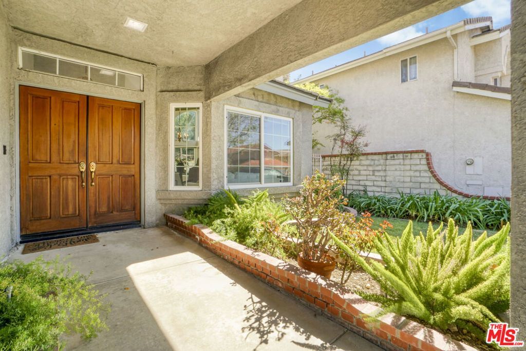 Beautifully updated, this spacious Saugus home offers a desirable floor plan, bright living spaces, and comfortable indoor-outdoor living. The main living area features tile flooring, exposed wooden beams, skylights, and vaulted ceilings that bring in an abundance of natural light and create an open, airy feel throughout the home. Dual-pane windows are installed throughout, bringing additional light into the living and dining spaces. The kitchen features quartz countertops, stainless steel appliances, abundant cabinetry, a large pantry, generous counter space, and a large center island that provides additional cabinetry and counter space, along with a breakfast nook for casual dining. The layout also includes a spacious family room with a fireplace along with a downstairs bedroom and full bathroom that provide flexibility for guests, extended family, or a home office. Upstairs, the primary bedroom includes a stunning bathroom with a large walk-in shower and walk-in closet. Two additional bedrooms are located down the hall along with another updated bathroom featuring stone countertops, tile flooring, and a stylish backsplash. Additional improvements include copper plumbing, tile flooring downstairs, dual pane windows, updated bathrooms, quartz kitchen countertops, a newer dishwasher and microwave, and fresh interior paint throughout. The home also offers abundant storage, including hallway cabinetry, under-stair storage, and built-in cabinets in the two-car garage with direct access to the home. Outside, a large backyard features succulents, rose gardens, and overhead string lights that create a pleasant setting for outdoor gatherings. The property is tucked away within the neighborhood, offering a sense of privacy while remaining conveniently located near shopping, dining, parks, hiking trails, and top-rated schools.