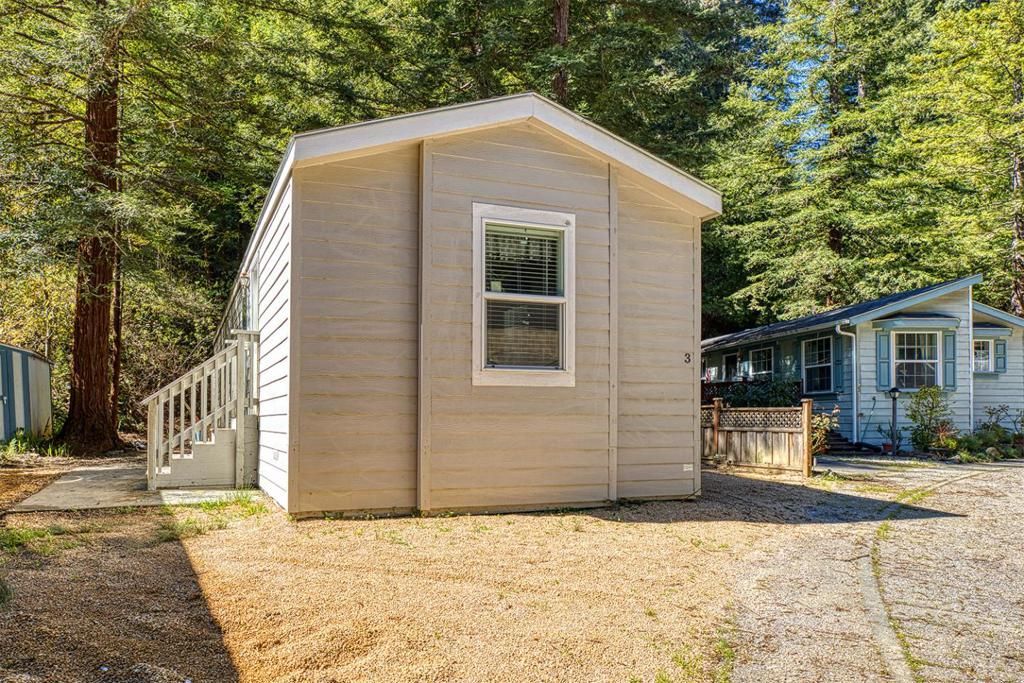 Here is a cutie tucked away in the Santa Cruz Mountains in sweet Felton! This family owned park is special and unique with a small community, gorgeous swimming pool, Redwood trees, and nature that surrounds you. This home was originally built as a 2 bedroom, the wall that separates the bedroom/living room was removed to create a larger living area. Vaulted ceilings make this home feel larger than it is. The kitchen has granite counter tops, a gas cooktop, corner kitchen sink, and an area for a dining table. There are hook ups for a washer/dryer also. The bathroom has granite counter tops, storage and a shower over tub. This park is peaceful, quiet, and very special. Come take a look!
