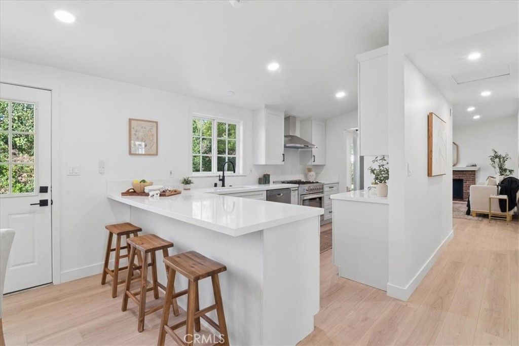 Tucked into a peaceful residential neighborhood in the foothills of Duarte, this light filled home offers an open and airy layout with vaulted ceilings and recessed can lighting throughout. The thoughtfully designed kitchen serves as the heart of the home, featuring new cabinetry, quartz countertops, new appliances, and an oversized chefs range, anchored by a generous peninsula that opens seamlessly to the dining area and family room, creating an inviting space for everyday living and entertaining. Sliding glass doors from both the living and dining areas extend the living spaces outdoors, creating an effortless indoor outdoor connection to the private backyard with a spacious grassy yard and patio. The primary suite provides a comfortable retreat with a large mirrored closet and an ensuite bath featuring a white oak vanity and oversized shower. Two additional bedrooms feature new closet doors and share a Jack and Jill bathroom appointed with a white oak vanity, chrome fixtures, and a deep soaking tub. Additional highlights include an attached two car garage, a well designed floorplan, and a quiet foothill setting near the San Gabriel Mountains with convenient access to parks, trails, and nearby amenities.