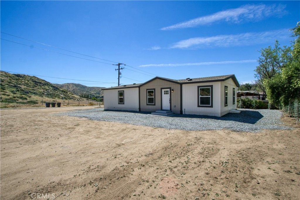 PHOTOS HAVE BEEN UPDATED! Step into your next adventure with this brand-new 3-bedroom, 2-bath home set against stunning mountain views. Situated on an expansive lot, theres room for everything?animals, toys, equipment, and more. Whether its dirt bikes, RV parking, or simply space to spread out, this property is designed for a lifestyle that lives beyond the walls. Thinking ahead? The flat, usable lot offers endless possibilities?add an ADU, build a workshop, or create your ideal outdoor setup. With the home thoughtfully placed on one side of the property, the remaining space is wide open for your future plans. A 200-amp electrical panel is already in place to support your vision. Built on a permanent foundation with a recorded 433A, this manufactured home offers both stability and peace of mind. Enjoy the convenience of being connected to SoCal Gas, along with EMWD water and sewer?no propane tanks, septic systems, or wells to worry about. Safety and efficiency are top of mind with a fire sprinkler system and a California Wildland Urban Interface (WUI) package. Even better, this has contributed to more affordable insurance options. Move-in ready and fully equipped, the home includes a refrigerator, washer, dryer, dishwasher, and oven/range. The property is beautifully enhanced with over 40 trees, all on an automated irrigation system. Tucked at the end of the street, youll enjoy added privacy and sweeping mountain views?while still being just minutes from the 215 freeway and Winchester Road. This is modern country living, ready when you are.