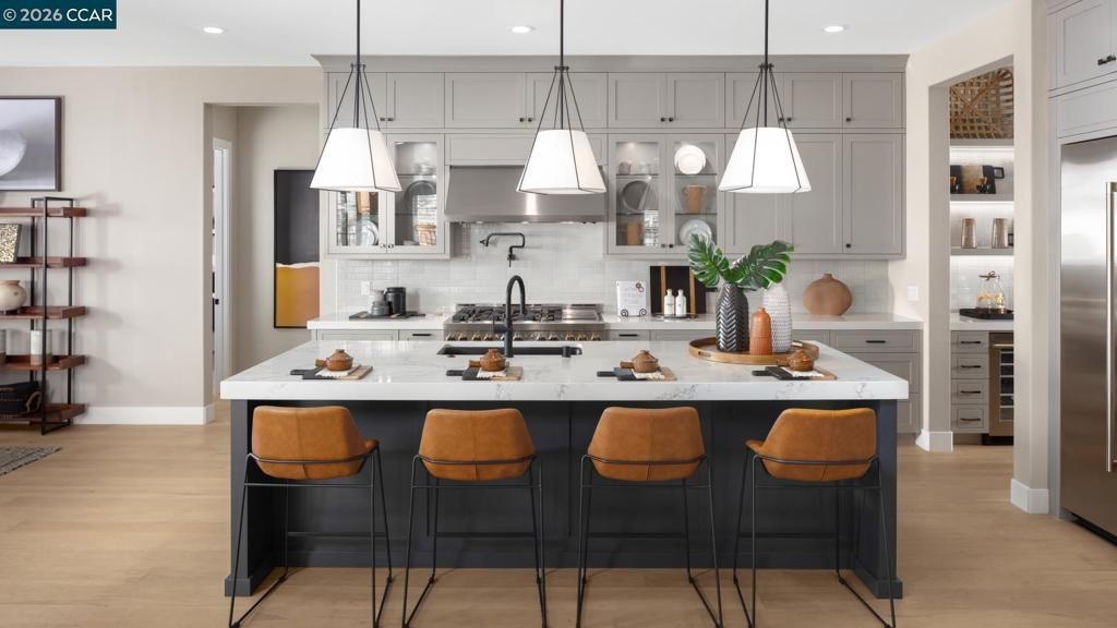 Active Adult 55+ Staff Gated Community. Welcome to Regency at Tracy Lakes, where luxury living takes center stage. Three picturesque lakes, this community features a fishing dock, 1-acre garden and dog park. A wealth of amenities, including clubhouse, indoor and outdoor pools, cabanas, a yoga studio, fitness center, bocce ball, and pickleball courts, every day here is an opportunity for relaxation and recreation. Onsite lifestyle director ensures theres always something to look forward to; from fitness classes to comedy shows and wine nights. A lovely foyer extends past a generous office toward the great room, cozy fireplace. An airy casual dining area is central to the expertly crafted kitchen, highlighted by an impressive island, stainless steel appliances, 48 gas range, and a sizable walk-in pantry. Complementing the elegant primary bedroom suite is a walk-in closet and a palatial primary bath complete with dual vanities, a large soaking tub, a spa-like shower with seat. Secondary bedrooms, one with a private bath (photos not of actual home, for marketing only, same floor plan, upgrades and features are different) Move-in Ready!
