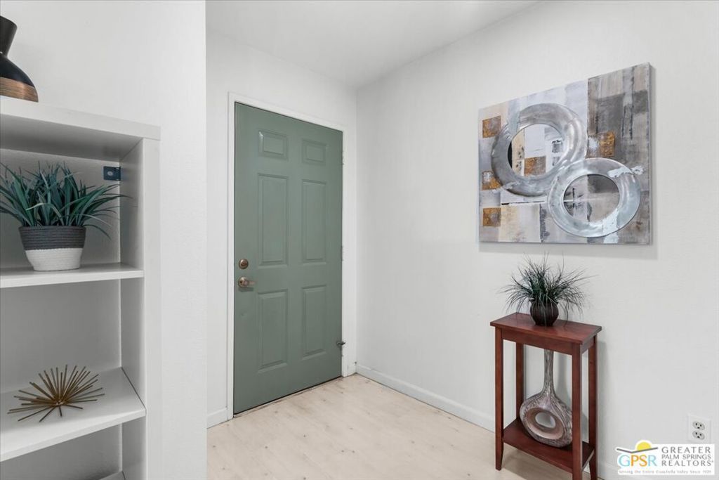 Welcome to this beautifully maintained upper-level condo in the sought-after community of Canyon Shores. Featuring two bedrooms and two baths, this fully furnished residence offers a serene retreat surrounded by the natural beauty of the desert. Step inside to find updated triple pane windows and sliding glass doors, along with comfortable furnishings that make this home truly move-in ready. Enjoy incredible views from the front entry and west-facing bedrooms, where sweeping vistas of the majestic San Jacinto Mountains create a stunning backdrop. From your private patio, take in the tranquil water feature and the lush, landscaped greenbelt that embodies the Coachella Valley lifestyle.Canyon Shores offers an exceptional array of amenities including multiple pools and spas, pickleball and tennis courts, a fitness center, and more creating a resort-like atmosphere that invites both relaxation and recreation. The HOA covers water, trash, ground maintenance, and new community roofing installed in 2025 providing convenience and peace of mind for carefree living. Ideally situated between Palm Springs and Palm Desert, Cathedral City offers effortless access to shopping, dining, golf, and entertainment throughout the valley, as well as easy access to the CV Link. Whether as a full-time home or a tranquil getaway, this inviting desert haven captures the perfect blend of comfort, location, and leisure.