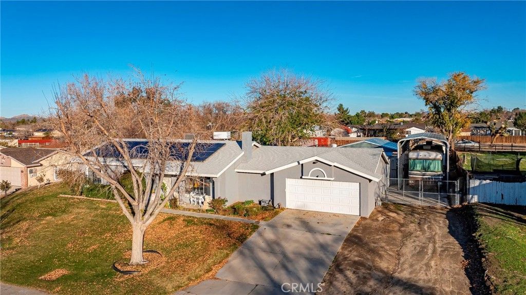 Paid-Off Solar ? Low Taxes ? No HOA Built in 1990 and meticulously maintained, this spacious 4-bedroom, 2-bathroom home offers approximately 1,771 square feet of comfortable living on a generous half-acre lot. Enjoy energy savings with fully paid-off solar panels and a tankless water heater, plus a newer roof installed in 2018. Inside, the home features a beautifully renovated kitchen with a massive 9-foot island overlooking the living room, a brand-new 8-burner stove, new dishwasher, and a dedicated drink fridge with coffee station. Tile flooring throughout the home makes maintenance effortless. The inviting floor plan includes four generous bedrooms and two updated bathrooms with new vanities, all filled with abundant natural light. Outside, the expansive half-acre lot offers incredible potential and includes:Covered RV parking with 30-amp service, Two large storage containers, Covered workshop with 220-volt power (perfect for a welder or air compressor), Outdoor shed, Play-set, Jacuzzi, Above-ground pool, Large covered patio with convenient alley access.