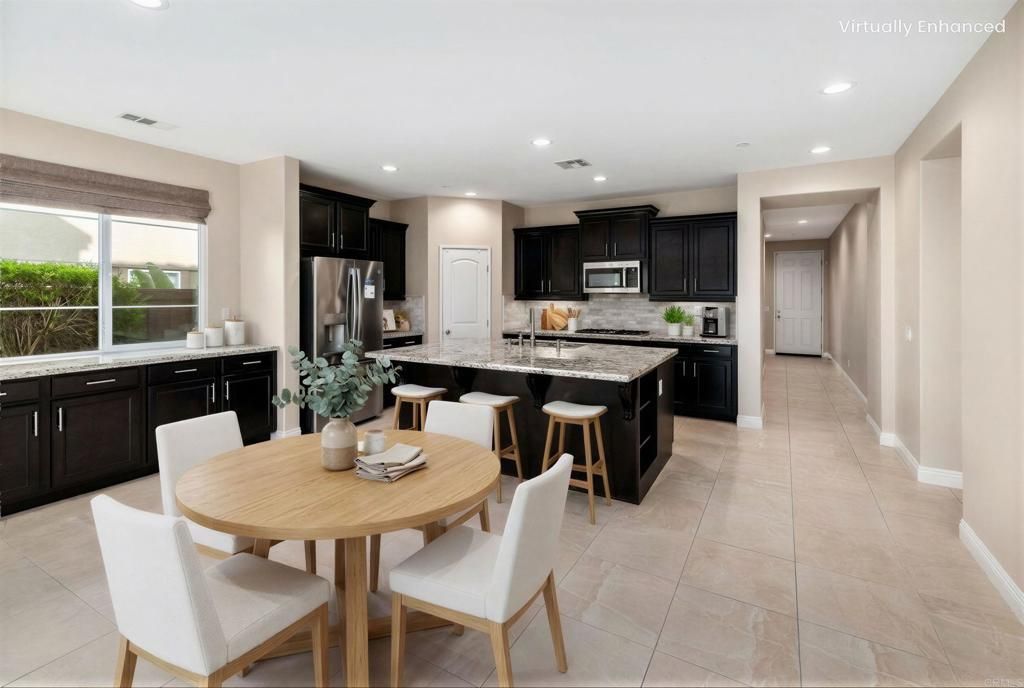 Welcome home to the Foothills! Take advantage of this extraordinary opportunity to live in one of the very few single story homes in this popular family friendly Carlsbad neighborhood. Enjoy a vibrant community w/ a pool, spa, parks, pickleball courts and scenic walking trails. The neighborhood is known for its strong sense of community, hosting fun organized events throughout the year such as Easter egg hunts, visits from Santa, summer concerts and movie nights. Just minutes from the beach & downtown Carlsbad, close to Legoland, Flower Fields & Strawberry Farms, shopping and freeway access. This location has it all! True pride of ownership is showcased in this thoughtfully designed 3-bedroom, 2.5-bath home which features a sun-drenched, open-concept layout with a spacious and stunning kitchen and living area?perfect for everyday living and entertaining. The kitchen is beautifully appointed with granite countertops, a travertine backsplash, stainless steel appliances, and abundant cabinetry, while recessed lighting, a charming fireplace and an integrated sound system enhance the homes inviting atmosphere. Enjoy this truly move-in ready home featuring brand new carpet and fresh interior paint throughout. Recent upgrades include a serviced HVAC system, a new garbage disposal, an updated electrical panel with five new circuit breakers, and owned solar panels that are fully paid off?offering long-term energy savings with no lease or loan to assume. The home also features luxury limestone tile flooring throughout the main living areas, paired with plush brand new carpet in the bedrooms and closets. The spacious primary suite offers convenient dual backyard access, a large walk-in closet with custom built-ins and a spa-like, well-appointed bathroom retreat featuring a separate soaking tub and shower. Additional highlights include an abundance of custom built-in cabinetry providing exceptional storage throughout, an indoor laundry room, and a finished garage with epoxy floors, custom storage cabinets, and overhead racks. Enjoy low-maintenance outdoor California living with paver hardscaping surrounding the home?perfect for relaxing or entertaining without the upkeep. A truly rare offering in a dream neighborhood, featuring an exceptional layout, thoughtful upgrades, and an unbeatable location?this is one you wont want to miss! Located within the award-winning Carlsbad Unified School District and walking distance to Sage Creek High School, this home checks every box.