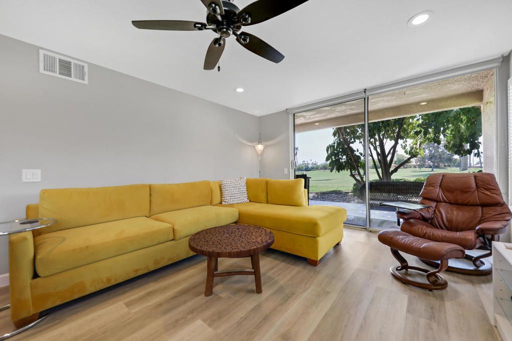 This adorable furnished condo is in beautiful Sunrise Country Club in the heart of Rancho Mirage. It is an end unit on the golf course with great views and is conveniently located very close to the clubhouse. The tasteful furnishings plus upgrades such as quartz countertops, Exceptional vinyl plank flooring, newer cabinets create the look of a model home. The single car garage accommodates a laundry area with room also for a golf cart. Private enclosed courtyard is perfect for outdoor relaxation. Don't miss this exceptional condo in the popular Sunrise Country Club! Close to shopping and fine restaurants at the River.