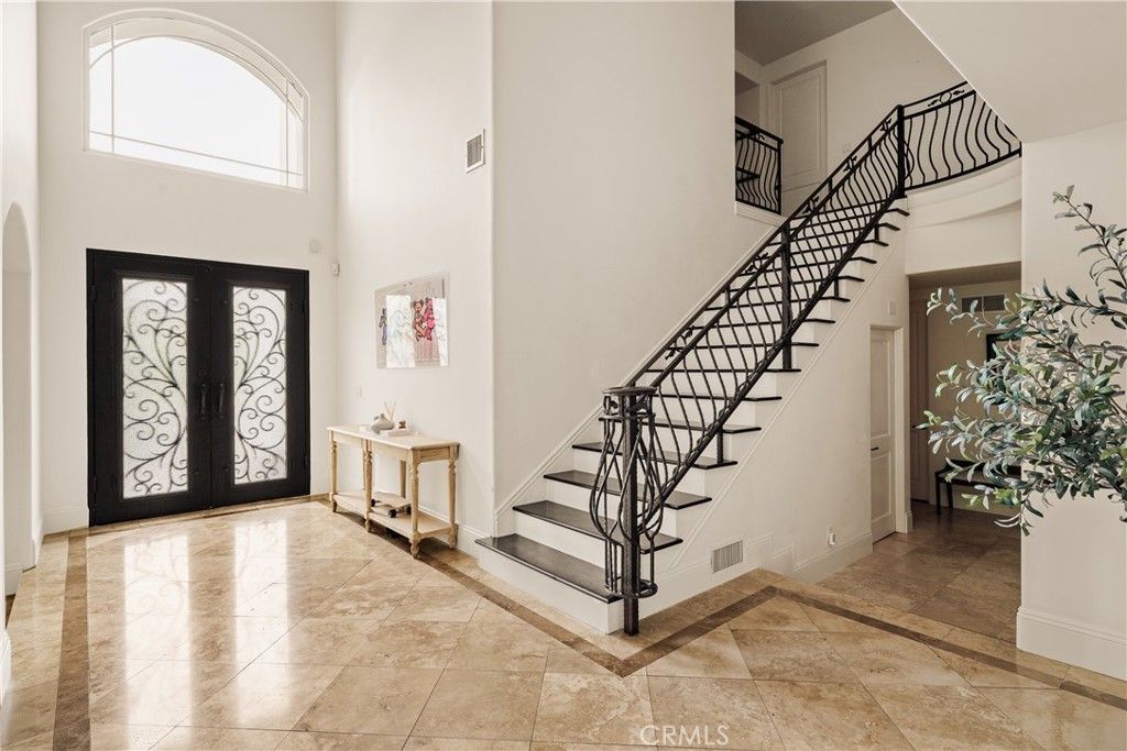 Situated within an exclusive gated enclave of just four homes with no HOA in Calabasas, this 5-bedroom, 4.5-bathroom residence offers approximately 4,365 square feet of light-filled living on an 8,654 square foot lot. A warm, inviting entry leads into interiors defined by soaring ceilings, arched architectural details, and expansive windows that fill the home with natural light. The layout is both functional and refined, with formal living and dining spaces complemented by an open-concept family room featuring custom built-ins and a fireplace. The updated kitchen is designed for everyday living and entertaining alike, with white cabinetry, generous counter space, a central island that opens seamlessly to the main living areas, and the added benefit of solar panels for enhanced energy efficiency. The main level includes a guest suite, laundry room, and a converted bonus room offering flexible use as an office, gym, media room, or playroom, along with direct access to the attached two-car garage equipped with a Tesla EV charging plug. Upstairs, the primary suite offers a true retreat, featuring vaulted ceilings, a fireplace sitting area, and private balcony access. The spa-inspired bathroom is complete with dual vanities, a soaking tub, and a glass-enclosed shower, creating a calm, resort-like feel. Additional bedrooms are spacious and well-appointed. The backyard is designed for effortless indoor-outdoor living, featuring a covered patio with wood-paneled ceiling, a pool and elevated spa, multiple lounging and dining areas, and lush, mature landscaping that provides both privacy and a serene setting. Ideally located just minutes from The Commons at Calabasas, offering premier shopping, dining, and entertainment, as well as scenic hiking and outdoor recreation in Malibu Creek State Park. With convenient access to Malibu beaches and nearby freeways, the home provides both everyday convenience and a true Southern California lifestyle. Located within the highly regarded Las Virgenes Unified School District, this home offers a rare combination of space, comfort, and prime Calabasas living.