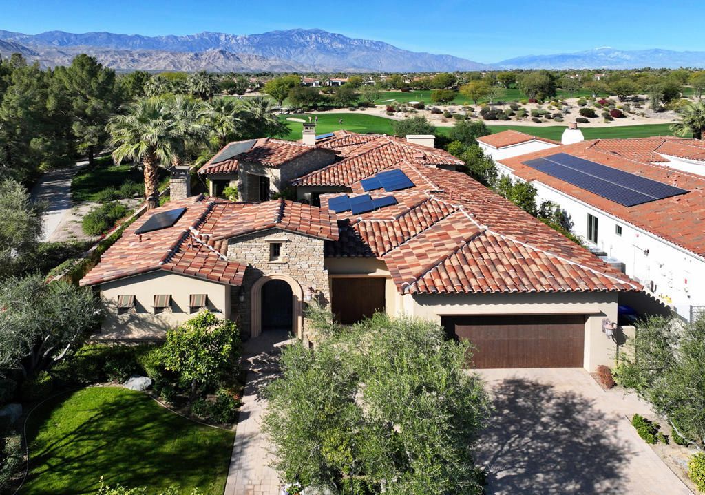Experience timeless Tuscan elegance in this exceptional residence ideally positioned on the 9th hole of Toscana Country Club's North Course. Set on a premium west-facing lot with no homes across the fairway, this property captures sweeping, unobstructed mountain views and spectacular desert sunsets, while offering close proximity to the Club's world-class amenities.Tuscan-inspired architecture paired with thoughtfully updated interiors creates a warm yet elevated desert retreat. The well-designed floorplan flows effortlessly for both everyday living and entertaining, with expansive living spaces that open to the outdoors and frame the golf course and mountain backdrop.The custom-designed gourmet kitchen is truly one of a kind, featuring distinctive finishes, Wolf and Sub-Zero appliances, and a layout tailored for both function and style. The private primary suite offers a peaceful escape, complemented by well-appointed guest accommodations that provide comfort and privacy.Outdoor living is elevated with expansive patios ideal for dining, relaxing, and enjoying panoramic views. Owned solar enhances efficiency, while the exceptional lot and prime location deliver the quintessential Toscana lifestyle.