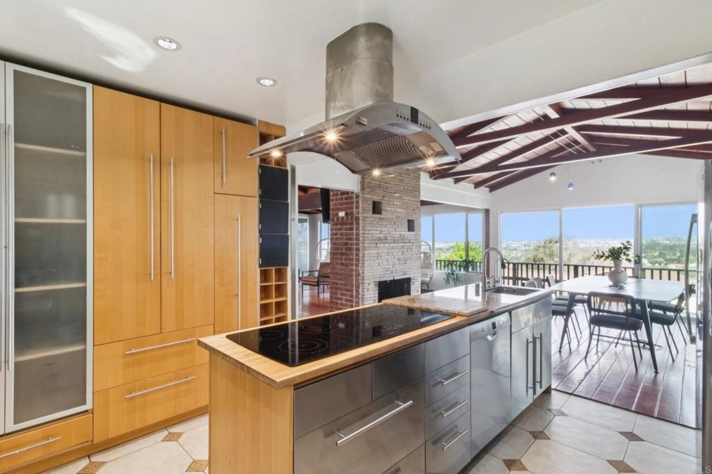 Perched in the scenic hills of Lynwood, just moments from Bonita, this one-of-a-kind mid-century modern retreat offers 3 bedrooms, 3 baths, and 1,742 sq ft of living space, delivering panoramic views, privacy, and true Southern California living. From sunrise over the East County mountains to glowing sunsets stretching toward Coronado Island, the wraparound deck captures it all. Set on over a third of an acre on a quiet cul-de-sac, this property feels like a private escape while remaining close to everything?Sweetwater Regional Park, hiking trails, I-805, Plaza Bonita, and the vibrant dining scene of downtown Chula Vista. Designed for both relaxation and entertaining, the outdoor space features a large family-size pool, patio, BBQ area, and fire pit, surrounded by mature landscaping and fruit trees. Inside, the home offers a warm and inviting layout. The primary suite includes a full en-suite bath, while the guest bedroom and additional bedroom/office each offer their own ¾ baths, creating flexibility for guests or multi-use living. The main living area showcases hardwood floors, a cozy fireplace, and striking tongue-and-groove wood beam ceilings that add character and charm throughout. The kitchen is designed for functionality and creativity, featuring a double oven, 6-burner cooktop, prep sink, and generous workspace, complemented by a cozy dining nook perfect for everyday living. This is a rare opportunity to own a truly distinctive home with unmatched views, character, and lifestyle appeal.