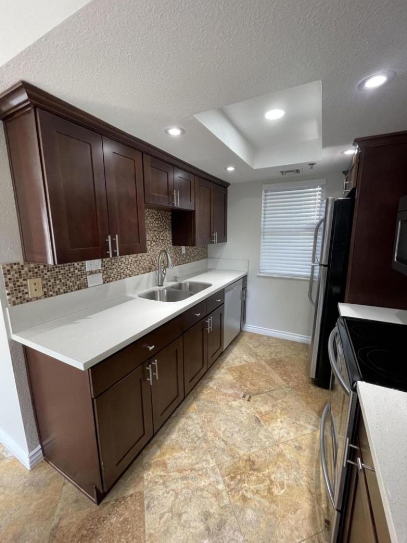 This beautiful, private single-level end-unit condo features 2 bedrooms and 1 bathroom, located in the guard-gated community of Palm Lake.The condo has been tastefully remodeled and showcases travertine flooring with elegant glass inlays. The kitchen is equipped with quartz countertops and stainless steel appliances, while LED lighting is installed throughout the home. Additional features include an in-unit washer and dryer and crown molding in the living area. Palm Lake offers excellent amenities, including a fitness center with new equipment and sauna, two community pools, as well as tennis, and sand volleyball courts. Ideally situated near shopping and dining, this home combines comfort and convenience.For a faster response or to schedule an appointment text Ana at (760)641-7226.