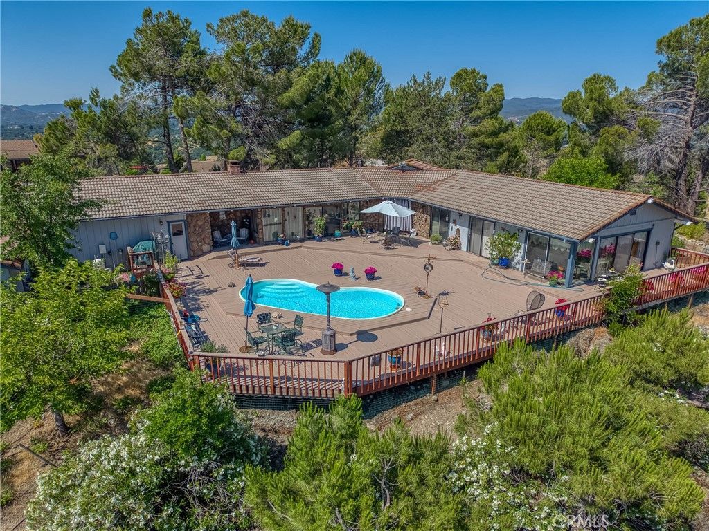 Step inside through a stunning entryway that sets the tone for the rest of the home. Thoughtfully designed with comfort and functionality in mind, the interior boasts quality craftmanship and plenty of natural light. Almost all rooms, including entryway, have slider doors to the expansive back decking and sparkling swimming pool with beautiful views of the lake, mountains and rolling hills creating indoor-outdoor living. This property features two 2-car garages, with workshop areas, - one attached, and another conveniently located next to it. Both offer easy access to the expansive back patio, deck and sparkling swimming pool, perfect for entertaining. Wake up in the master bedroom with walls of windows, offering breathtaking panoramic views. This 1+ acre property also features a paved circular driveway with a carport for easy access to the front door. A new heating and air-conditioning unit installed in 2025. Conveniently located, rural yet close to public docks, parks, boat launches, shopping, hospital and restaurants.
