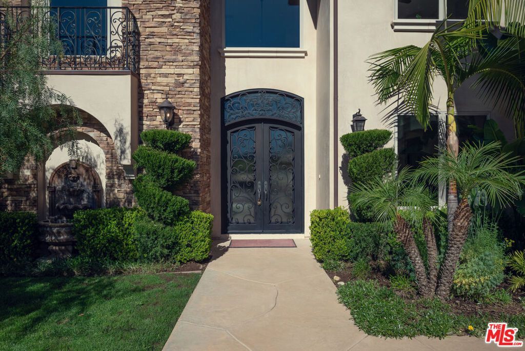 Refined Luxury Living with Resort-Style Grounds and Private Cinema. A long private gated drive ascends to this newer Mediterranean estate, built in 2019, perched atop its own private knoll within the prestigious guard-gated community of Bell Canyon. Offering exceptional privacy and sweeping views, this extraordinary custom residence was built with an uncompromising commitment to quality, craftsmanship, and thoughtful design.Grand double iron doors open to a dramatic foyer with soaring ceilings and expansive windows that flood the home with natural light. The gourmet kitchen features a stunning oversized island with waterfall quartz countertops, custom cabinetry, and premium Sub-Zero and Wolf appliances, opening seamlessly to the family room with a custom fireplace and disappearing glass doors that create effortless indoor-outdoor living.Designed for ultimate entertainment, the private cinema features soundproof insulation, premium GoldenEar speakers, a 145-inch perforated projection screen, high-end reclining seating, a dedicated AV equipment room, and its own independent AC system. The home is equipped with a Control4 smart home system, commercial-grade touch screen thermostats, and full network wiring throughout.The luxurious primary suite offers a private veranda, dual walk-in closets, and a spa-like bath. All bedrooms are thoughtfully designed with no shared walls or ceilings, creating exceptional privacy, and are pre-wired for ceiling speakers.Technology is seamlessly integrated throughout the home with Wi-Fi access points installed across the entire residence, providing strong connectivity throughout the property. The pool system is also connected to Wi-Fi, allowing remote control and monitoring for convenience and ease.Set on approximately 2.2 beautifully landscaped acres, the grounds feature mature trees, impressive engineered retaining walls, and a resort-style backyard complete with a modern pool and spa with Baja shelf, outdoor hot shower, and multi-zone outdoor speakers.Additional highlights include humidifier upgrades to each HVAC system, GoldenEar ceiling speakers in the living room and library, DoorBird smart gate entry system with kitchen monitor, and a garage equipped with three electric vehicle charging outlets.