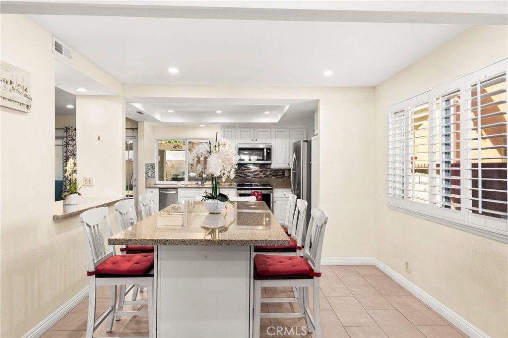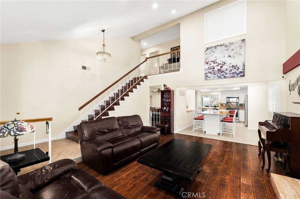 Beautifully upgraded home located in one of La Palma's most desirable locations. This thoughtfully improved property features a permitted downstairs addition (over $100,000 investment) with its own private entrance and brand new bathroom with dual sinks, a brand-new walk-in shower and a new walk in closet. The space is ideal for multigenerational living, guest quarters, or?with minor modifications?can function as a Junior ADU for potential rental income. The home showcases a fully remodeled kitchen designed for both style and functionality, featuring granite countertops, custom backsplash, sturdy white cabinetry, recessed lighting, an oversized center island, and a new stove. The kitchen flows seamlessly into the family room and living room with vaulted ceilings, creating a bright and open living space enhanced by custom cabinetry that matches the kitchen design. Upstairs, the primary suite enjoys views of the nearby greenbelt and playground, while two additional bedrooms are spacious and well-appointed with a jack and jill bathroom. Additional upgrades include newer dual-pane insulated windows, custom wood shutters and durable laminate wood flooring. The backyard is designed for entertaining, featuring an oversized custom patio and two separate covered patio areas, perfect for gatherings and outdoor relaxation. The garage includes EV charging capability, adding modern convenience. Located within an award-winning school district known for some of the highest test scores in the state, this home offers a rare combination of versatility, thoughtful upgrades, and prime location.
