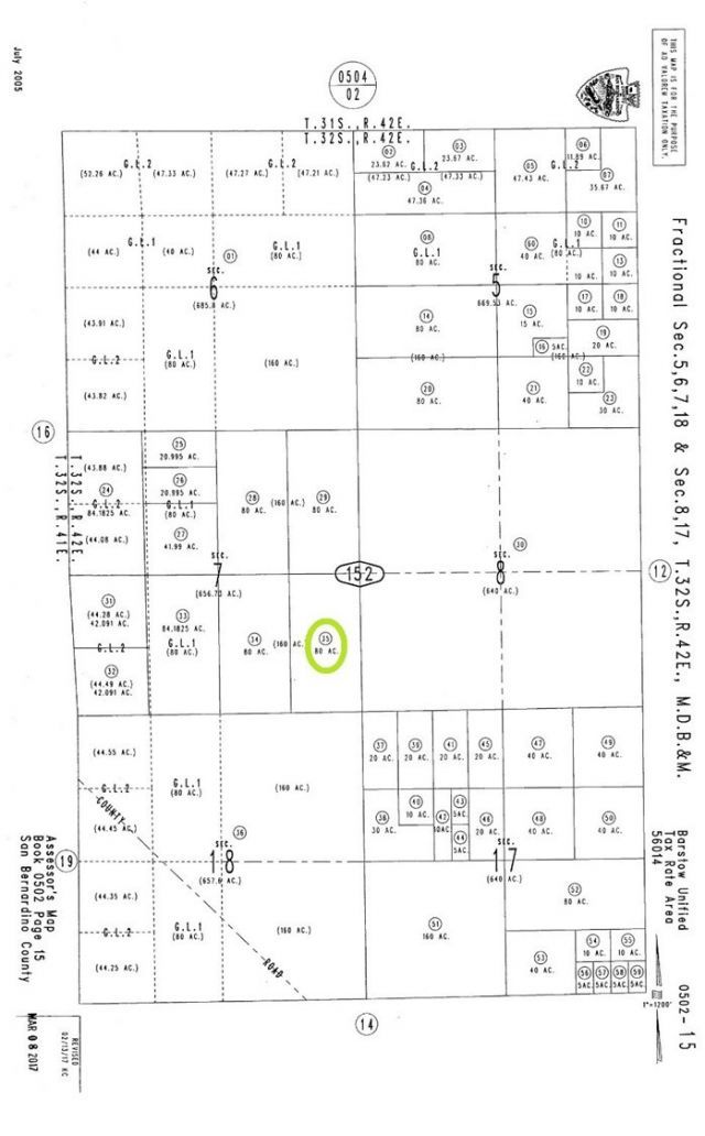 ***Come VIEW and MAKE an OFFER TODAY! AFFORDABLE ACREAGE located in expanding Kramer Junction CA. The 80-ACRE parcel, situated in the San Bernardino County High Desert, is zoned RC - Resource Conservation. The RC zoning allows for many agricultural, residential, recreational, commercial, and renewable energy possibilities. Located a few miles east of Hwy-395, and just north of the new Hwy-58 overpass, the area is right in the path of growth. Plus, only a short drive from the I-15 and I-40 interchange in Barstow CA. An ideal spot for your own personal ranch or recreation area. Not to mention the potential for mitigation land banking, and with California increasing standards for renewable energy generation, demand for desert acreage has started to rise. In addition, the adjacent 80-ACRE parcel to the north is also available. See APN 0502-152-29. Each parcel can be purchased separately or as a package deal. Priced at only pennies per sf, this is a must see OPPORTUNITY before it's too late. (GPS Coordinates to site 35.155980,-117.507714) ***