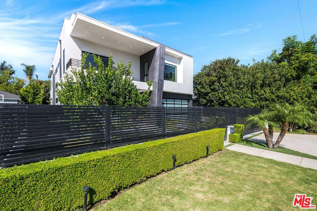Sleek, custom-built modern masterpiece located on a quiet, tree-lined street in prime Encino. This one-of-a-kind residence showcases high-quality craftsmanship, clean architectural lines, and seamless indoor-outdoor flow across an expansive open layout. A dramatic entry welcomes you into soaring double-height ceilings and walls of glass that flood the interiors with natural light. The main level features wide-plank European oak floors, a spacious great room with fireplace, and retractable glass doors that open to the private backyard oasis. The gourmet kitchen is a showpiece, outfitted with custom European cabinetry, sleek stone countertops, and a large center island. Top-of-the-line appliances include double ovens, dishwasher, microwave, espresso machine, and wine cooler, complemented by a Sub-Zero refrigerator. A formal dining area and covered outdoor living room with fireplace make entertaining effortless year-round. Upstairs, the primary suite offers a private balcony overlooking the lush yard, a fireplace, large walk-in closet, and a luxurious spa-style bath with designer finishes. Each additional bedroom includes its own ensuite bath and walk-in closet. The backyard is a true retreat with a sparkling pool, spa, and manicured landscaping providing ultimate privacy and tranquility. Additional amenities include a two-car garage, surround sound, and security system with cameras. A rare blend of modern elegance and functionality - this exceptional Encino home is the epitome of sophisticated California living.