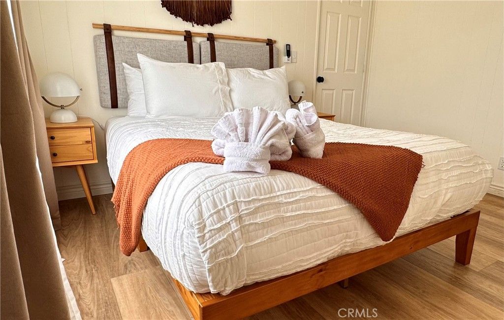 Exceptional investment opportunity in Joshua Tree! This property features two manufactured homes situated on over 10 acres of land, adorned with pistachio trees across three combined parcels. The first home is approximately 1,056 square feet, offering 2 bedrooms and 2 bathrooms, currently operating as a short-term rental. The second home spans about 900 square feet with 2 bedrooms and 1 bathroom, occupied by a long-term tenant. Both homes have undergone extensive renovations and are fully connected to utilities, including power, gas, water, and sewer. They are equipped with modern stainless steel appliances. Located near Joshua Tree National Park, the property boasts breathtaking 360-degree views and holds significant potential for generating additional income streams.