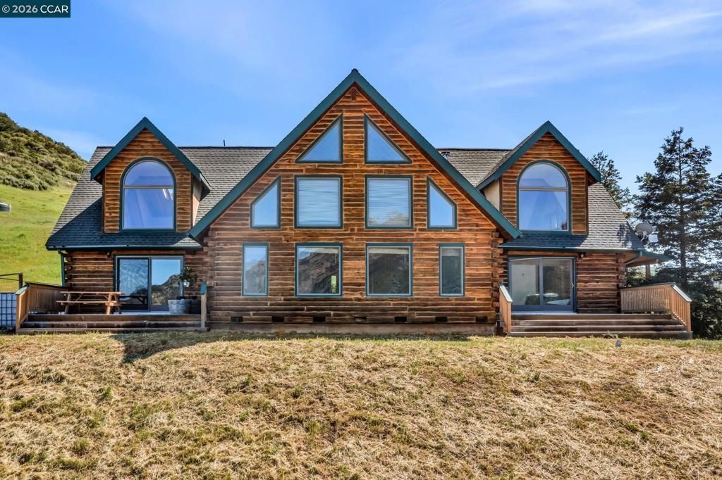 Experience everyday living like a vacation in this one-of-a-kind custom log cabin, beautifully perched on a hillside to capture breathtaking, nearly 360-degree views from every window. With 3,138 square feet of thoughtfully designed living space, this 4-bedroom, 3-bathroom home blends rustic charm with modern comfort. Stunning open-concept great room features a dramatic two-story wall of windows that floods the space with natural light and perfectly frames the views. Fireplace anchors the room, creating an inviting atmosphere for relaxing or entertaining. Kitchen offers a gas stove, abundant counter space & walk-in pantry, all seamlessly flowing into the dining area. From here, step out onto the deck?ideal for indoor-outdoor dining/ living and taking in the spectacular scenery. The main level features a primary suite complete with a private loft?perfect for a home office, reading nook, or creative space?along with a secondary bedroom featuring ensuite bathroom. Upstairs, youll find two additional bedrooms, a full bathroom, and a large bonus loft. The setting is truly unmatched, with unobstructed panoramic views of Mt. Diablo & rolling foothills in every direction. With ample usable land, theres plenty of room for animals, toys, etc. 3+miles from downtown, schools, shopping